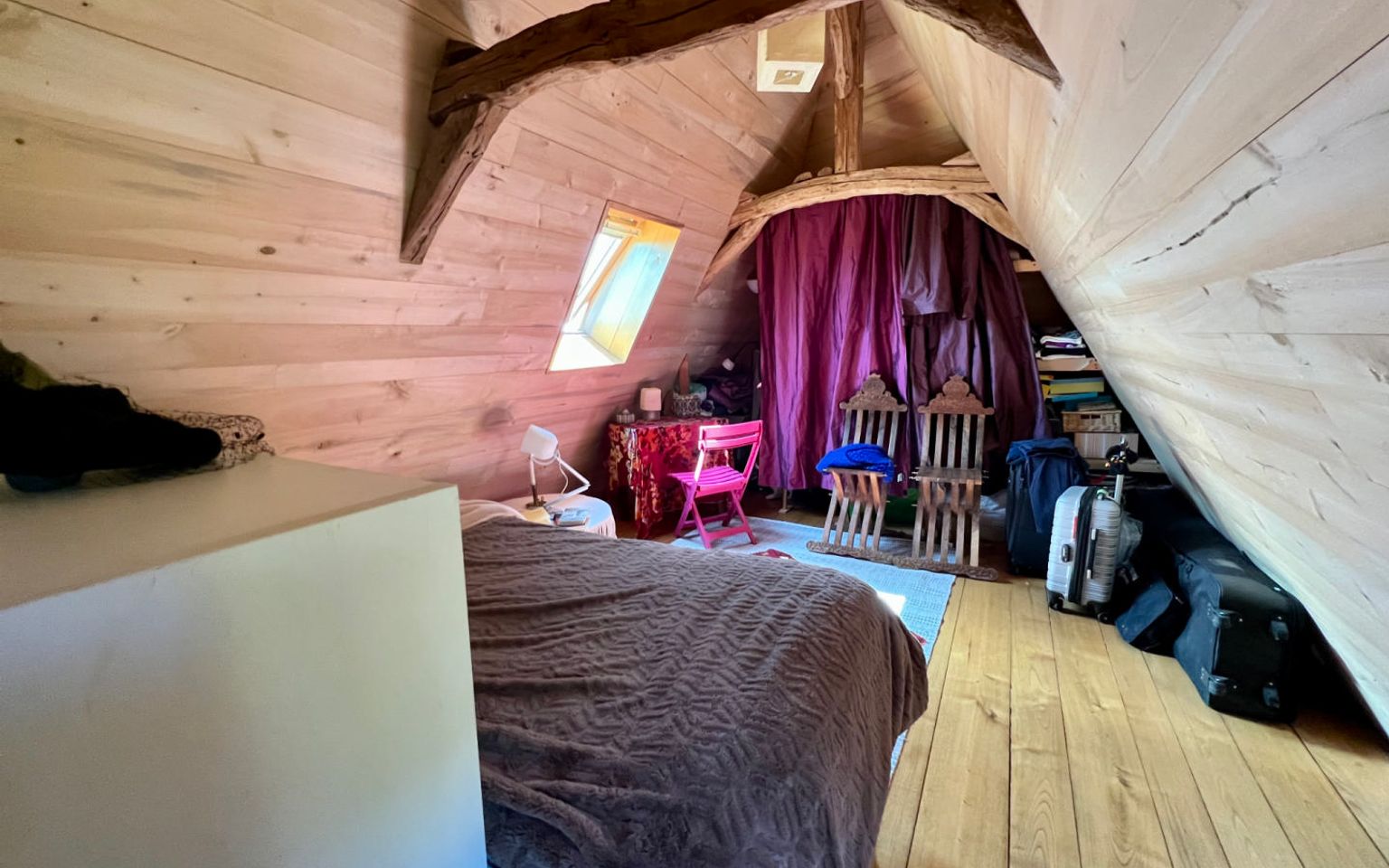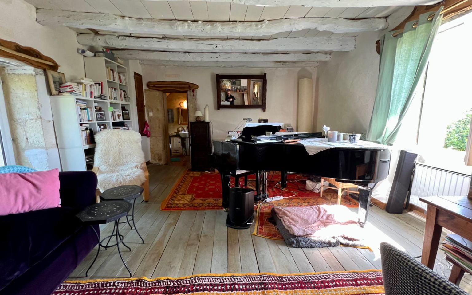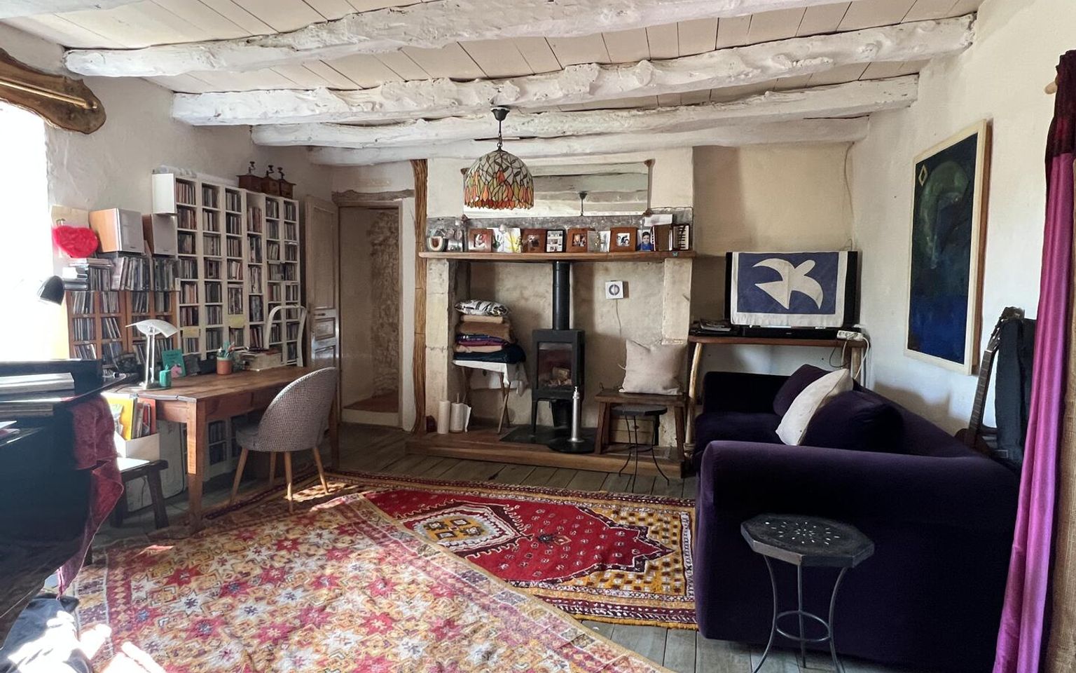 Pièce(s) à vivre de 27 m² avec une cheminée avec poele à bois.