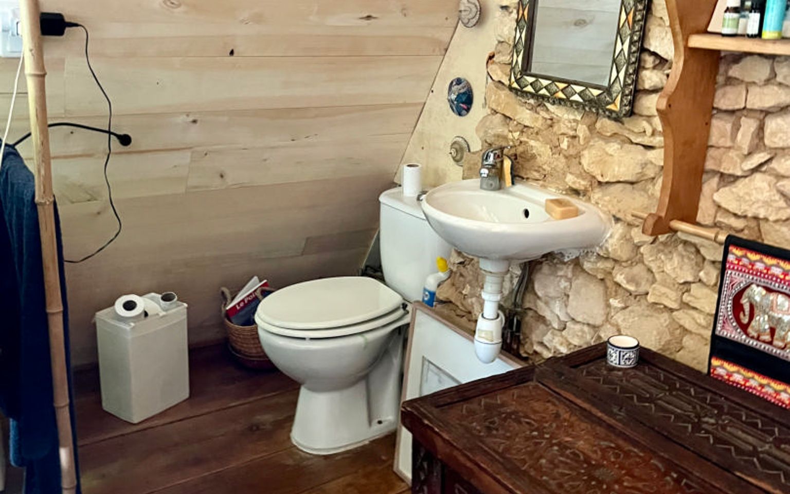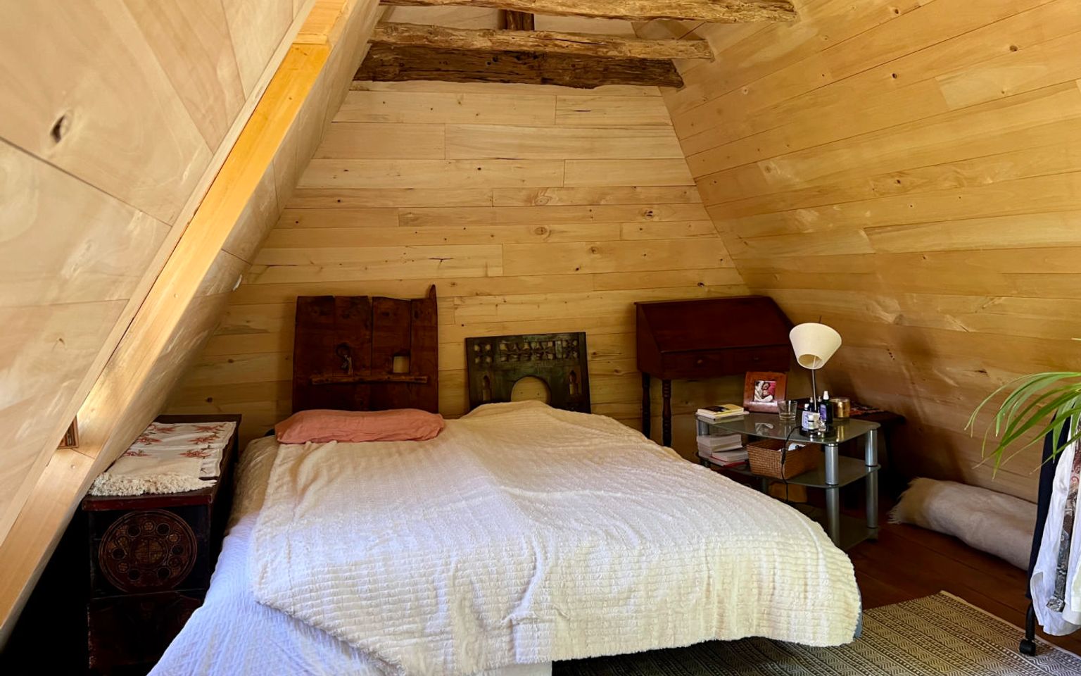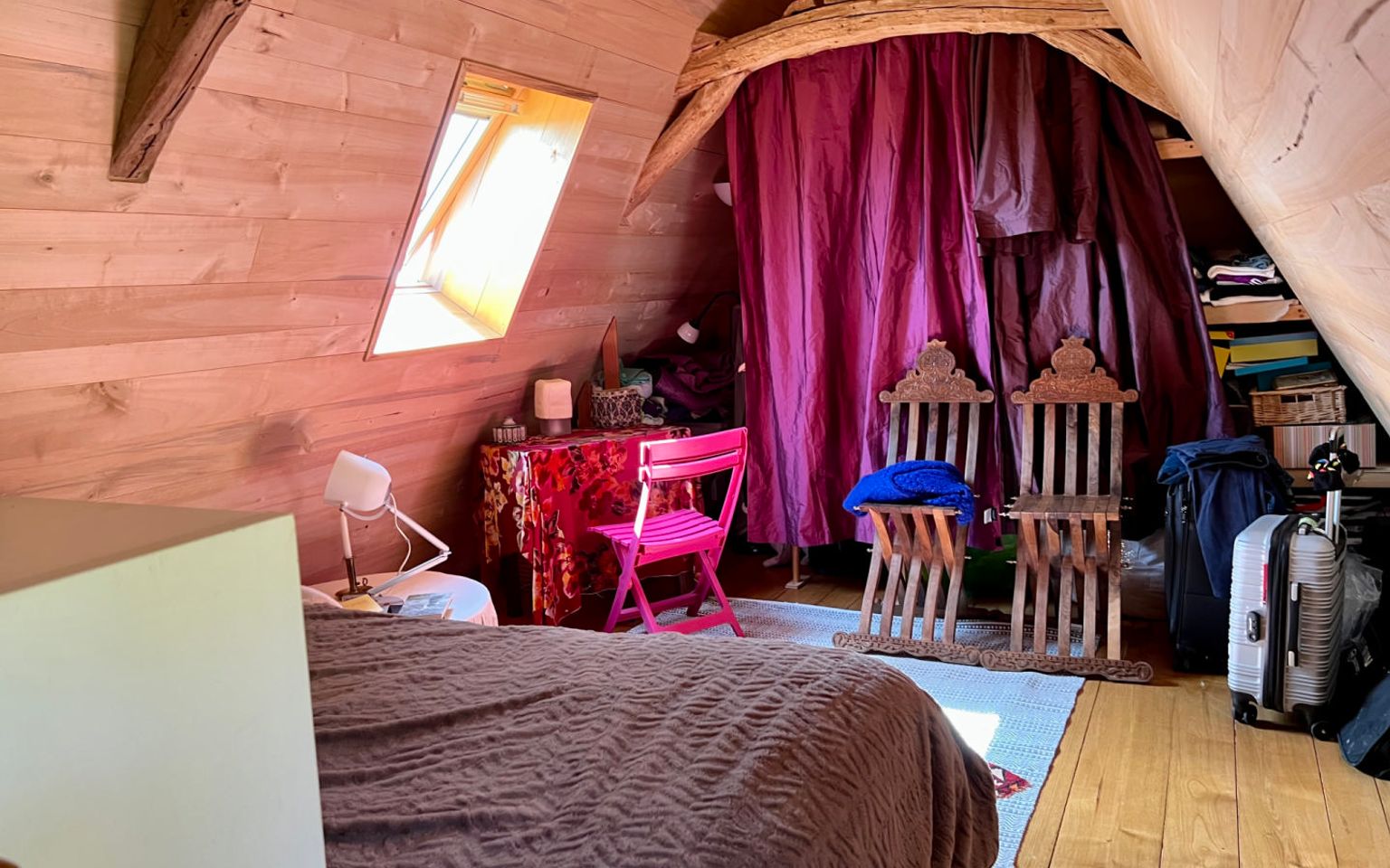 Pièce(s) à vivre de 27 m² avec une cheminée avec poele à bois.