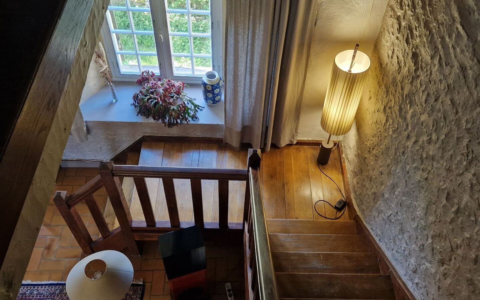 Demeure de caractère aux pierres blondes, l'accès se fait par un bolet avec viel évier de pierre sur Salon avec cheminée monumentale de 48m2. Cuisine récente aménagée et équipée avec espace repas. Une pièce actuellement atelier d'artiste est une réelle chambre de plain pied. Une salle d'eau dans la tour avec wc reste à rafraichir. A l'étage, large dégagement vers 2 belles chambres mansardées, une salle d'eau dans la tour. Un espace bureau et une pièce plus petite pour chambre d'appoint ou dressing.
