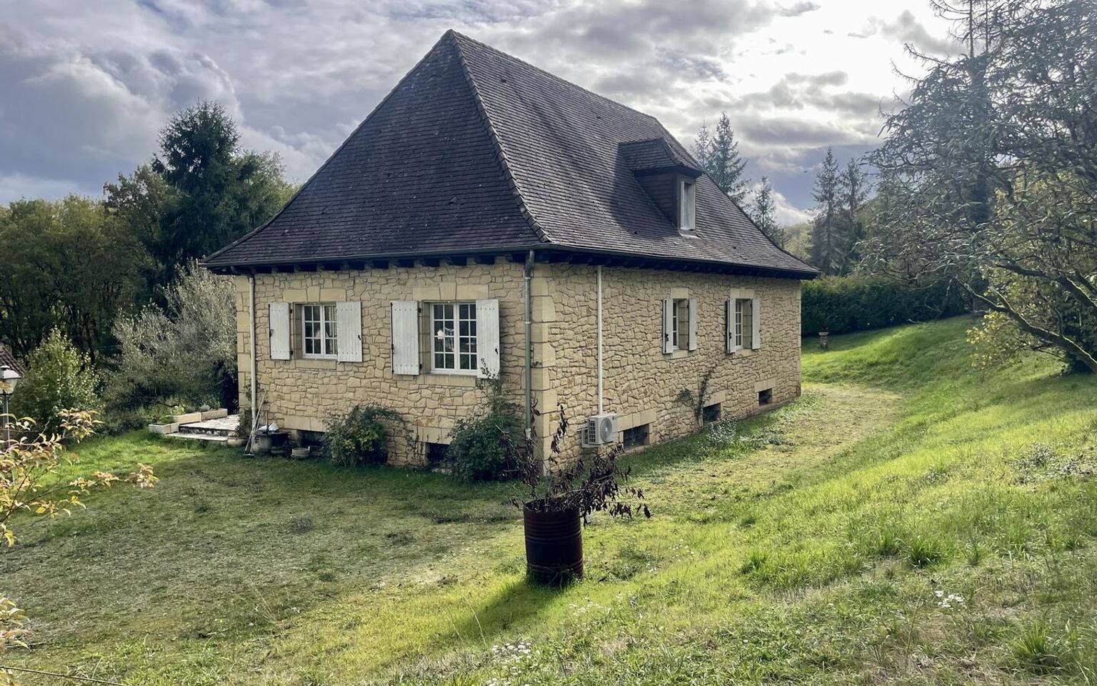 Aux portes du Périgord Noir, entre Terrasson et Montignac, belle maison contemporaine en pierre avec terrain attenant.