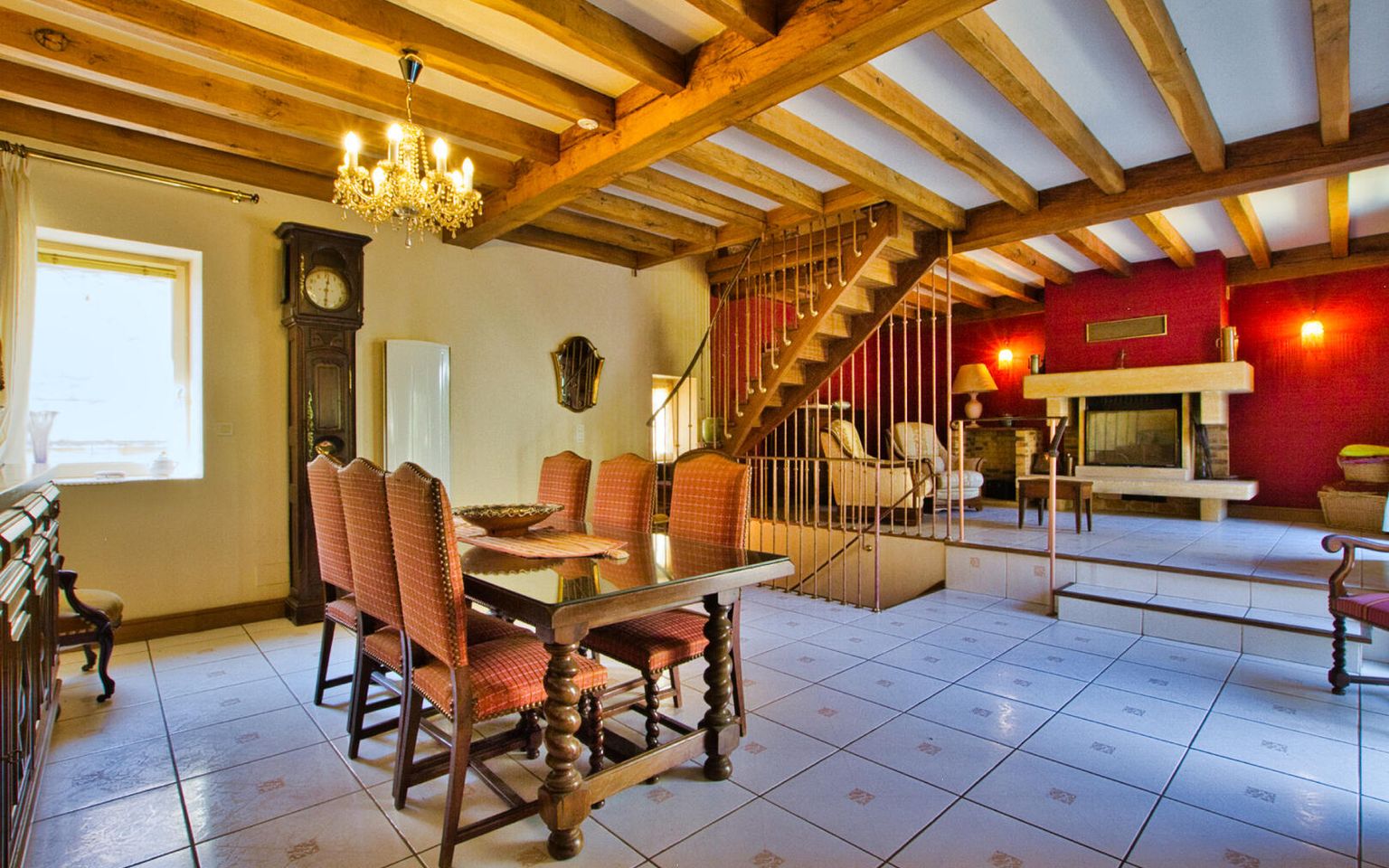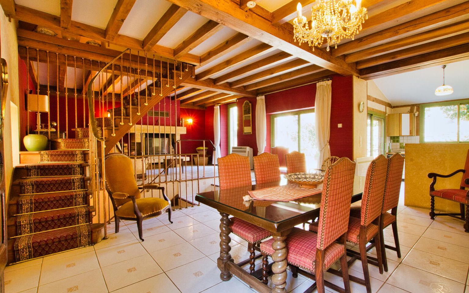 Au 1er étage, vous trouverez une belle pièce principale d'environ 60m2 avec poutres apparentes cheminée en pierre avec insert et cuisine ouverte équipée. Depuis la cuisine ou le salon/salle à manger vous accèderez à une magnifique cour intérieure par deux larges baies vitrées donnant beaucoup de luminosité à la maison !