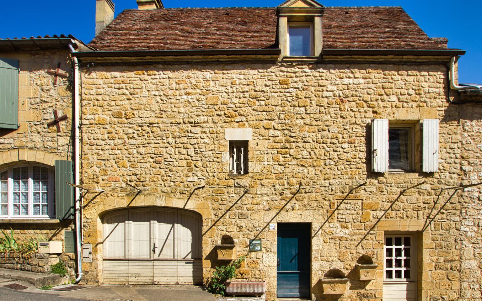 RARE, dans la Bastide de Domme, jolie maison en pierre de 125 m2 environ, composée en rez-de-chaussée d'une entrée avec placard/penderie ouvrant sur une chambre en suite indépendante.