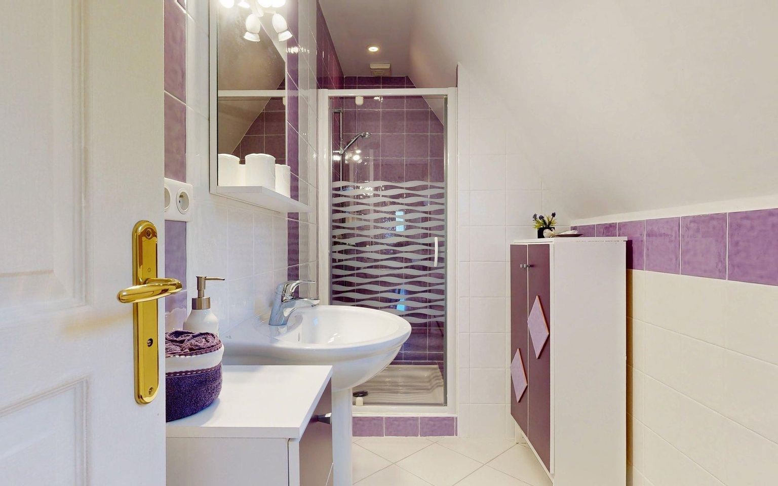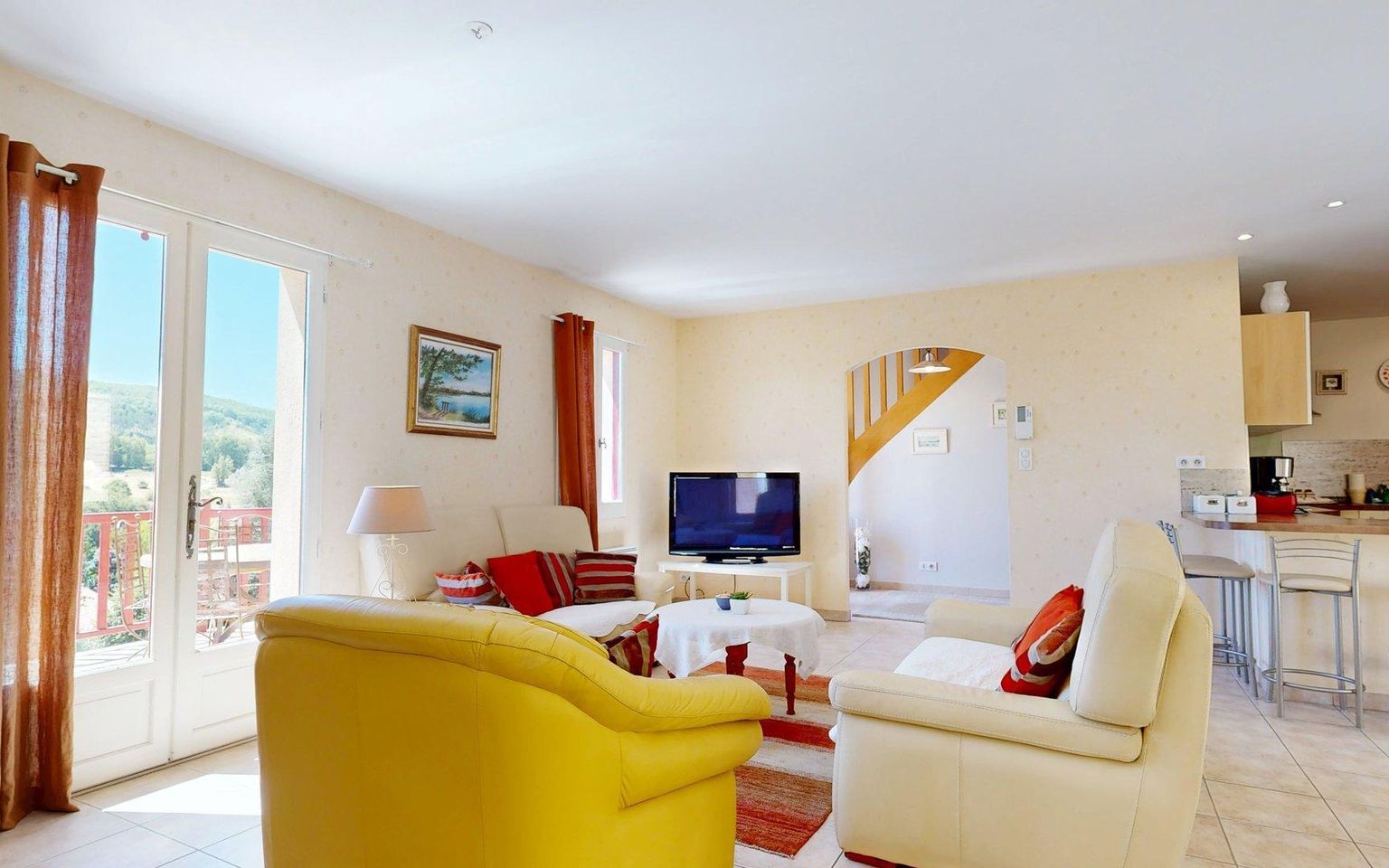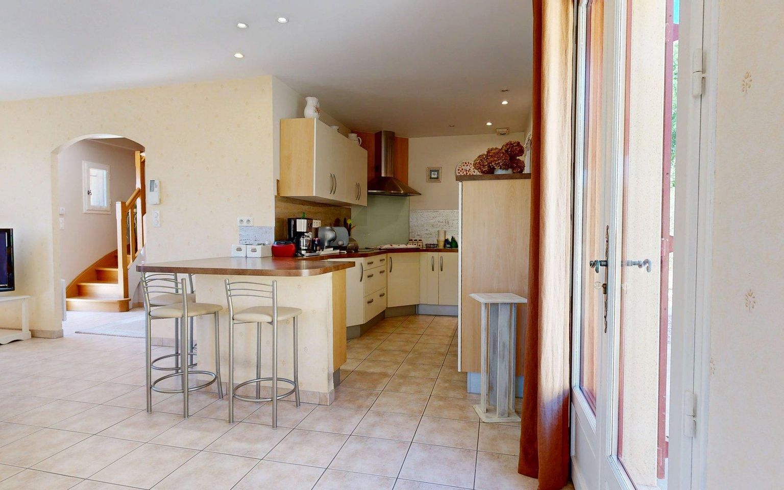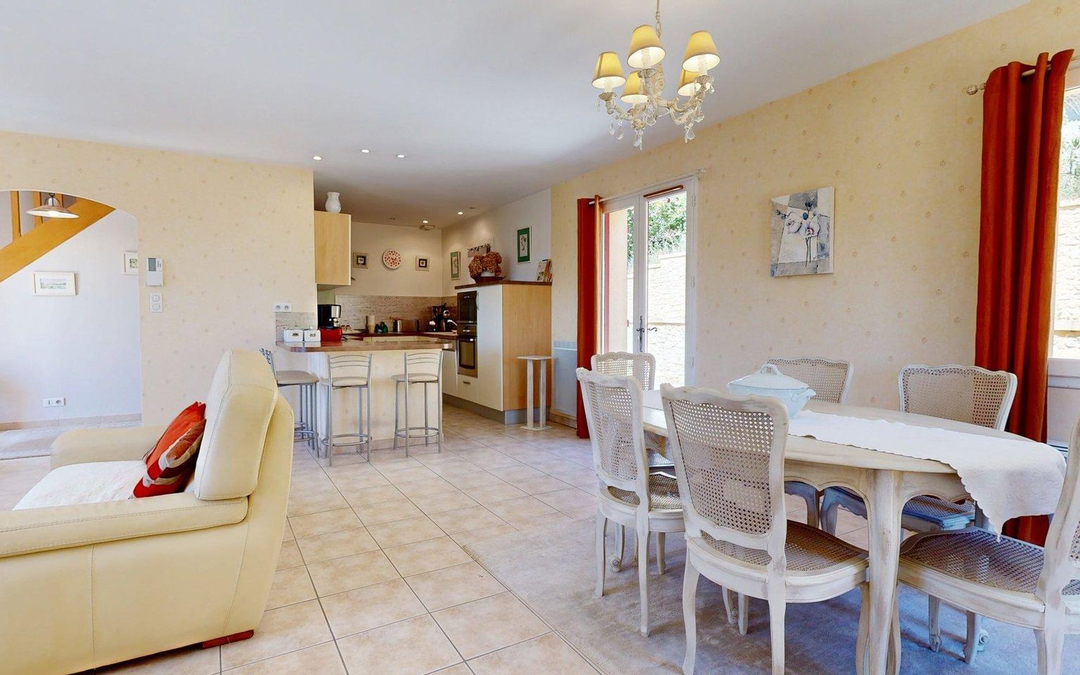 Elle propose une grande pièce de vie avec cuisine ouverte entièrement équipée, quatre chambres (dont une au rez-de-chaussée), deux salles d’eau et deux toilettes. L’ensemble est lumineux et bien distribué.