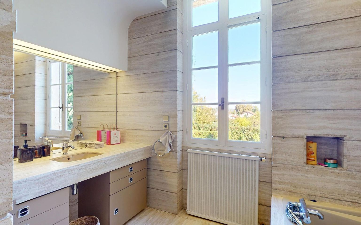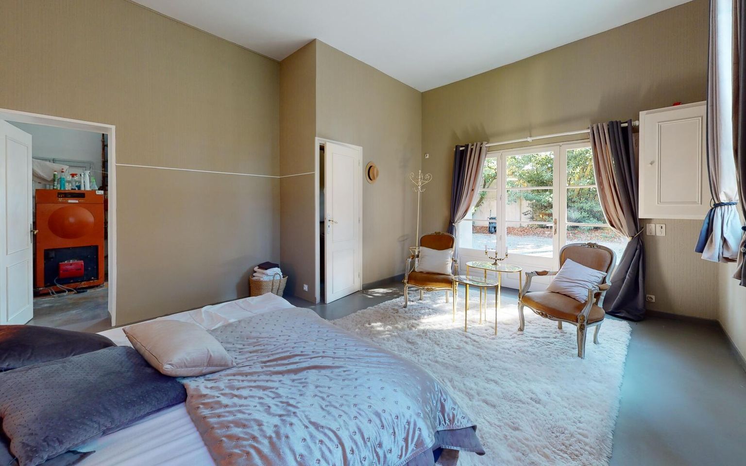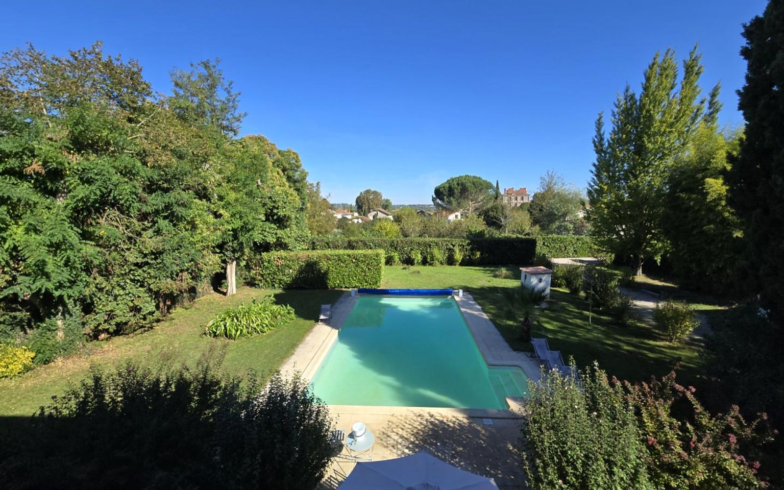 Vivez dans une élégante maison de maître au charme authentique, avec piscine, tranquillité et un vaste jardin, en plein cœur de la ville, à proximité immédiate de toutes les commodités. Une combinaison unique ! Située au cœur de la charmante ville de Villeneuve-sur-Lot traversée par Le Lot, à deux pas de toutes les commodités, cette magnifique maison de maître offre une surface habitable de 300 m². Dès que vous franchissez le portail automatique, vous pénétrez dans un havre de paix. En empruntant l'allée privée, l'imposante demeure se dévoile, avec sa grande piscine de 6 x12, chauffée par géothermie et superbement située face à la maison. Ici, vous profiterez pleinement du plein air, du petit-déjeuner au soleil jusqu'aux douces soirées d'été, avec un dîner au bord de la piscine et sous les étoiles. Le jardin paysager offre de nombreux espaces pour installer un hamac et profiter du soleil ou se mettre à l'ombre. Vous trouverez également un garage pouvant accueillir deux voitures et offrant un espace généreux pour vos outils de jardinage. Cette spacieuse maison familiale dégage un charme authentique et une atmosphère chaleureuse, grâce à des éléments d'origine tels que la grande cheminée du salon accueillant, les hauts plafonds, les poutres apparentes et les parquets d'origine. Dès l'entrée, vous serez séduits par les pièces vastes et lumineuses aux hauts plafonds. D'un côté du hall central, vous accédez au salon spacieux et lumineux, qui s'étend sur toute la longueur de la maison et est équipé d'une cheminée et du chauffage central. De l'autre côté se trouve la cuisine entièrement équipée, attenante à une salle à manger spacieuse. Le rez-de-chaussée comprend également une grande bibliothèque/bureau et deux chambres avec salles de bains privatives. Vous y trouverez aussi une buanderie et un espace de rangement, qui peut également servir de buanderie. L'escalier circulaire en chêne d'origine menant au premier étage est un véritable atout. En arrivant, vous remarquerez immédiatement le parquet d'origine, puis, en levant les yeux, la belle hauteur sous plafond. À cet étage, vous trouverez trois chambres, dont une avec salle de bains privative, et une salle de bains séparée. Les deux chambres disposent chacune d'un dressing. Située au cœur d'une ville animée, tous les restaurants et bars seront accessibles à pieds, mais vous pourrez aussi profiter des longues soirées d'été au calme bercé par le chant des grillons et des oiseaux : voilà le rêve français par excellence ! Les informations sur les risques auxquels ce bien est exposé sont disponibles sur le site Géorisques : www.georisques.gouv.fr