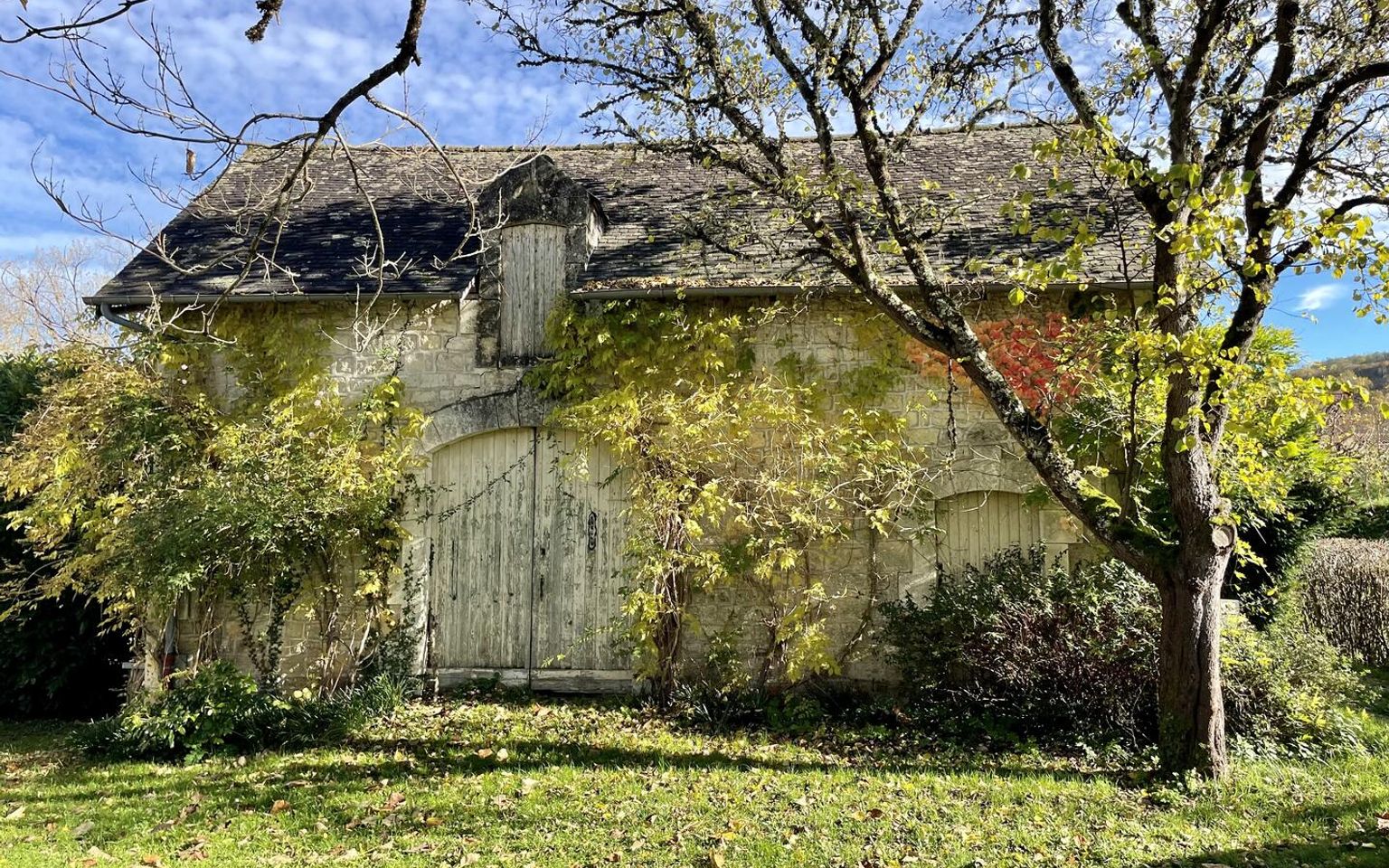 En Périgord Noir, dans un village avec commerces et services, maison ancienne de 148 m² et grange, sur plus de 1500 m2 de terrain.
