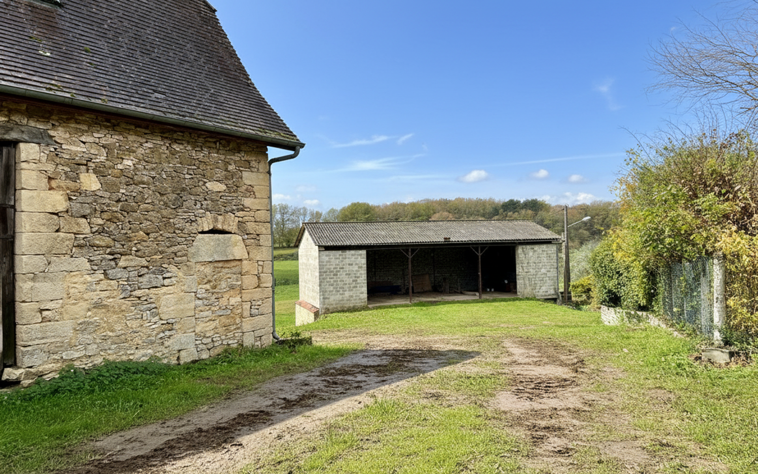 Entre Montignac et Hautefort, Périgord Noir, cette propriété, à rénover, se situe sur les hauteurs en position dominante. Terrain de 4 hectares environ avec étang de 4000 m². Elle tourne le dos à un joli hameau composé de maisons typiques du pays, et s'ouvre côté vue, au sud, sur la campagne. Il y a un fort potentiel et des gros oeuvres très sains dans l'ensemble (3 granges, préau...). La maison fait environ 60m² sur 3 niveaux et une belle grange est attenante avec 2 niveaux de 60m² possible. Très beau projet à réaliser avec un emplacement qui justifiera l'investissement.