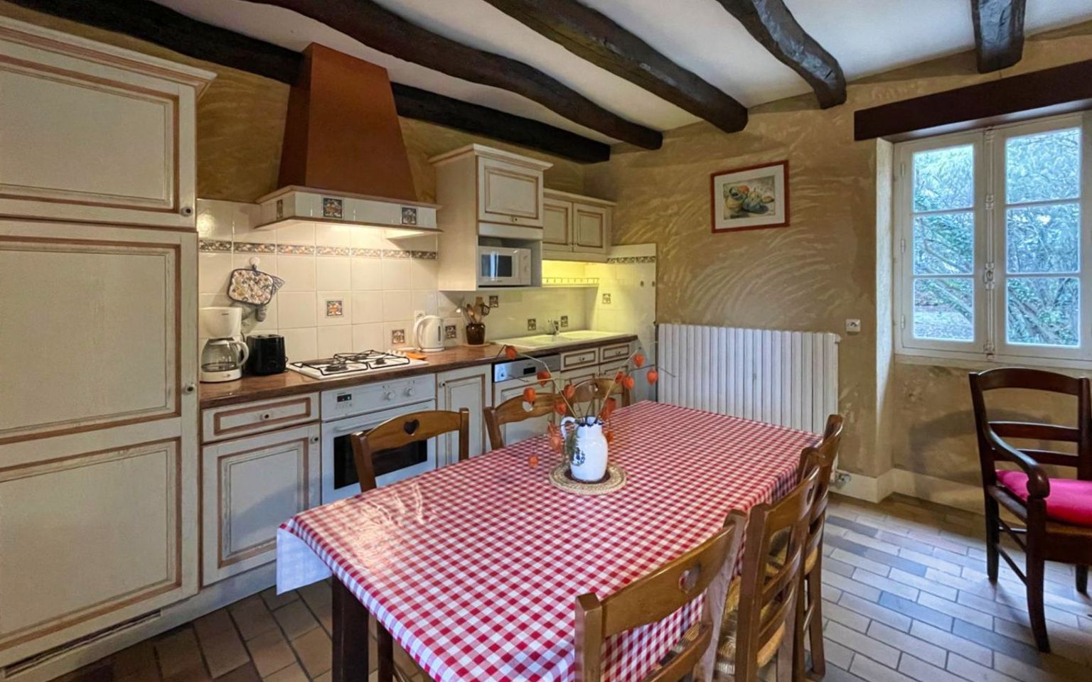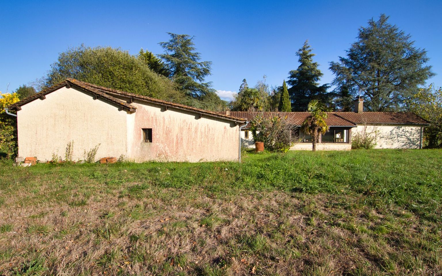 Sur une hauteur, aux portes de l'un des plus beaux villages du Périgord noir, découvrez cet ensemble immobilier composé de deux maisons en partie construites en pierre, idéal pour un projet de maison principale et gîte ou maison d'amis. La première maison de plain pied de 80m2 se compose d'une véranda ouvrant sur une pièce de vie avec cheminée , une kitchenette, une seconde véranda faisant office de séjour/salon, deux chambres, un bureau ou chambre d'enfant, une salle d'eau, WC ainsi qu'un garage attenant avec cave. La seconde maison de plain pied de 80m2 offre une belle pièce de vie de 28m2 équipée d'un cantou avec foyer ouvert, une arrière cuisine/chaufferie, une salle d'eau, un wc, 3 chambres dont une s'ouvre sur le jardin par une porte fenêtre. Les deux maisons sont chauffées au fioul, présence de la fibre pour la seconde maison, Le terrain de 7 280 m2 environ est plat et arboré, deux grandes dépendances complètent ce bien Possibilité d'acquérir en plus ; terrains constructibles et prairies Les informations sur les risques auxquels ce bien est exposé sont disponibles sur le site Géorisques : www.georisques.gouv.fr 280