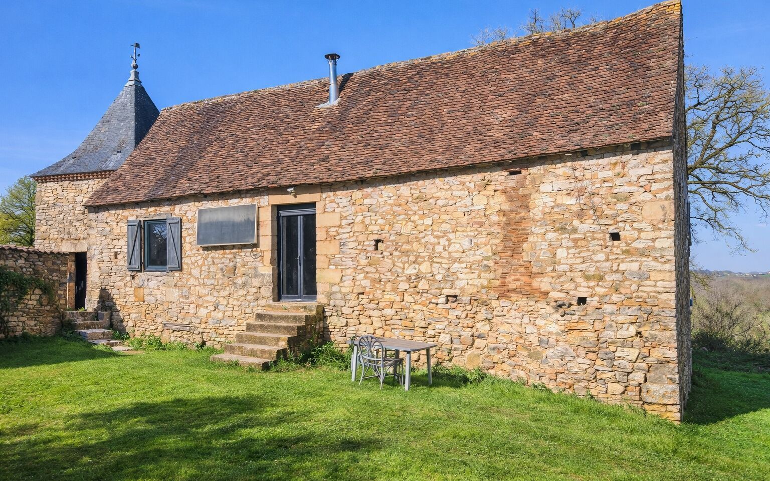 À quelques minutes d’Excideuil, en fin de hameau, cet ensemble en pierre du XVIIe siècle bénéficie d’un environnement paisible et d’une belle vue ouverte sur la campagne du Périgord.
