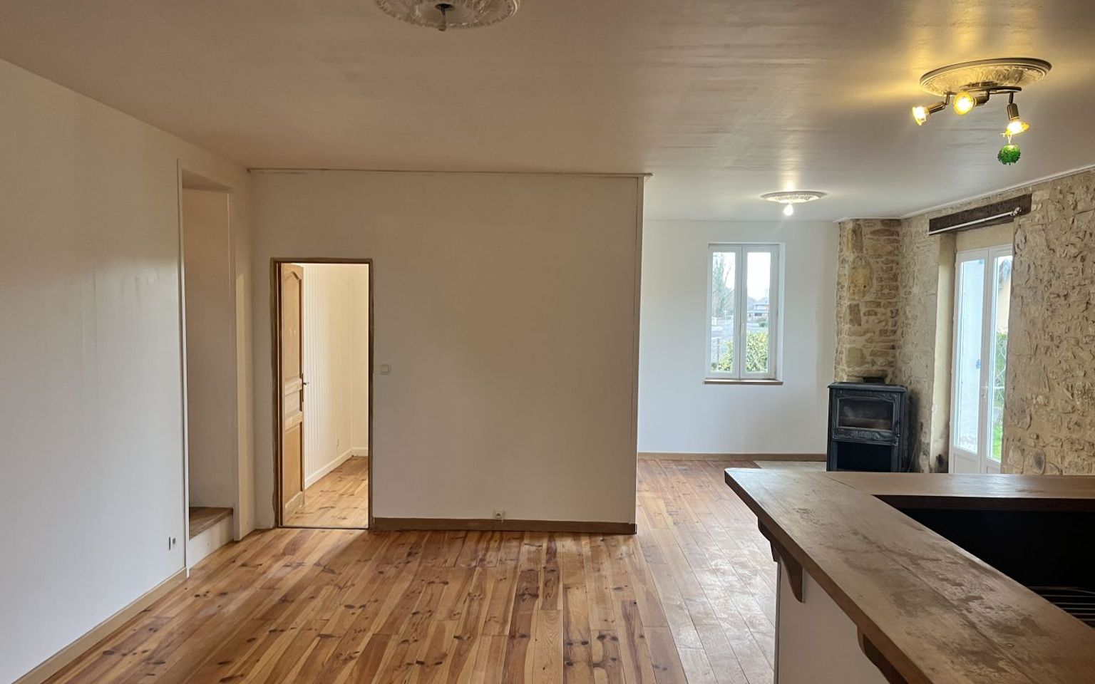 Située à 5 km des commerces, cette maison de village en quasi plain-pied conviendra parfaitement à ceux qui recherchent un foyer fonctionnel. L'intérieur se compose d'une pièce de vie principale de 45 m2 avec cuisine ouverte, d'un cellier, de trois chambres, d'une salle d'eau et d'un WC séparé. Pour le chauffage, la maison dispose d'un poêle à bois complété par une climatisation réversible et du double vitrage. À l'extérieur, on trouve un garage et un atelier indépendant pratiques pour le stockage ou le petit bricolage. C'est un bien idéal pour un premier achat ou un pied-à-terre facile d'entretien dans un secteur calme. Les informations sur les risques auxquels ce bien est exposé sont disponibles sur le site Géorisques : www.georisques.gouv.fr.