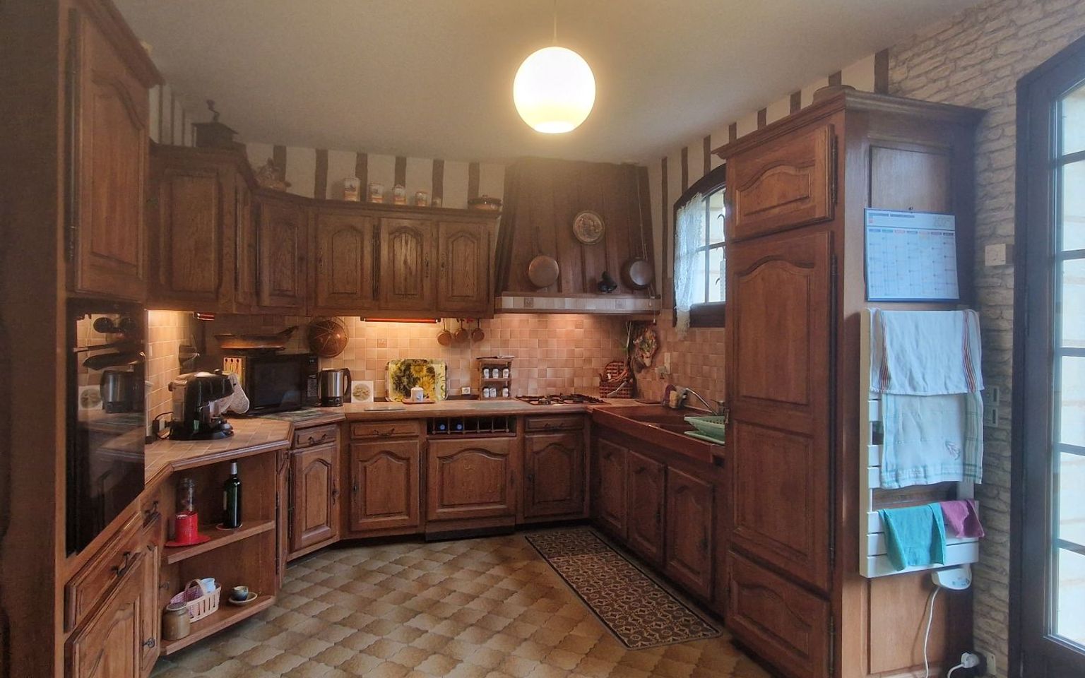 Cuisine(s) de 16m² aménagée et porte donnant sur le jardin