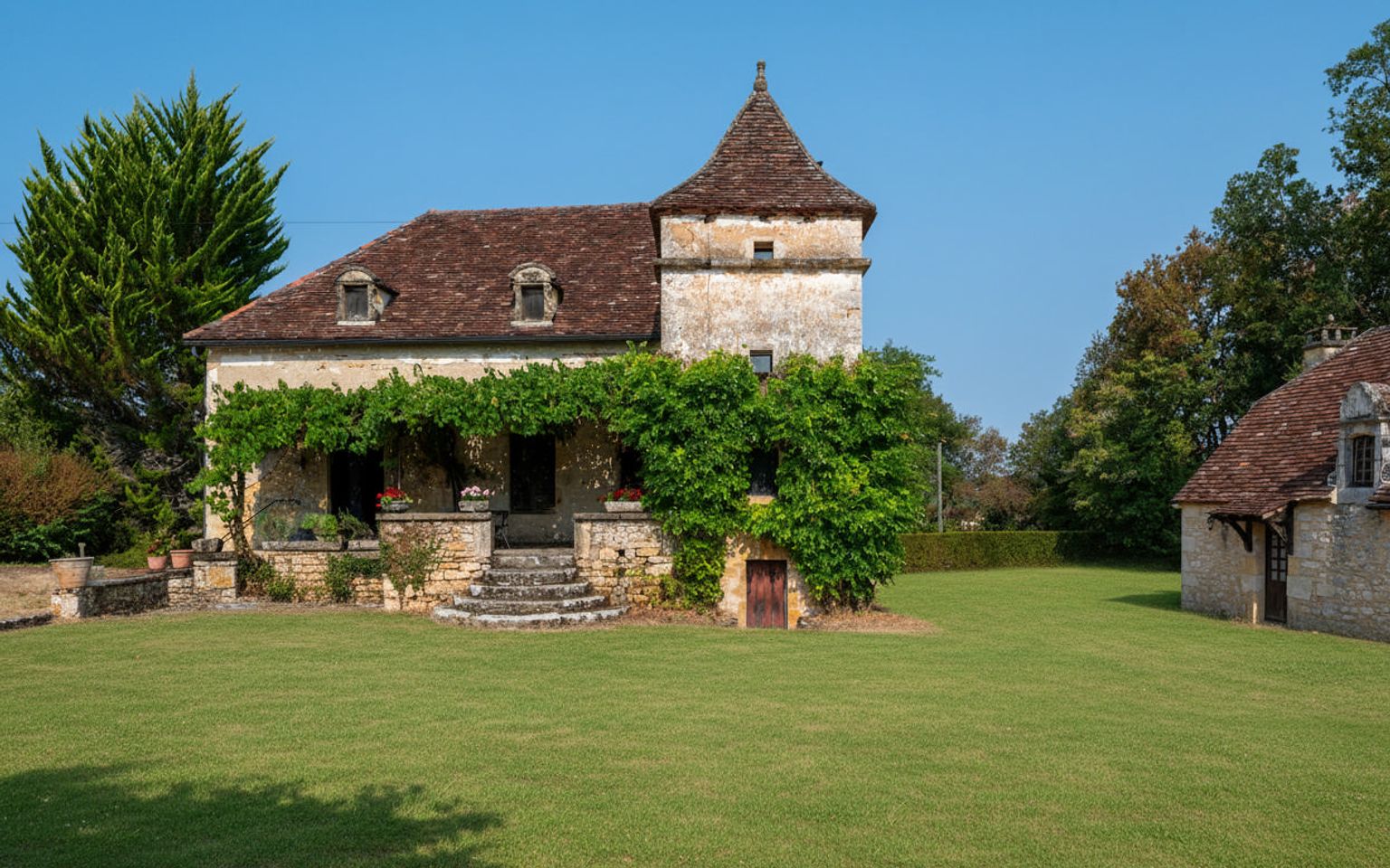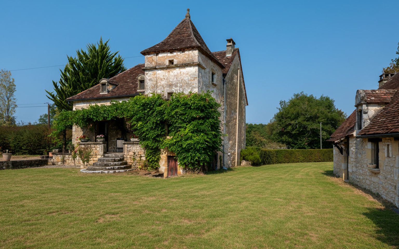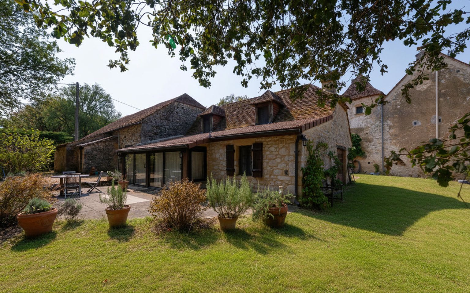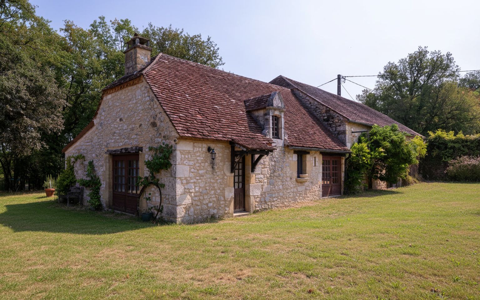 EXCLUSIVITE - Secteur Carlux - Coup de coeur pour cet Ensemble immobilier en pierre ! En situation indépendante au calme dans une belle campagne sur 3ha48 composés en majorité de prairies, cette magnifique Propriété de charme comprend une belle et typique Maison d'habitation accompagnée d'une grange en pierre avec partie aménagée en maison d'amis. Adjacent, à l'abri des regards, un agréable espace piscine avec grand bassin, plages, pool house, cuisine d'été. La Maison. RDC. Entrée par terrasse couverte bolet, Séjour de 40 m² avec cheminée - poêle Godin, salle à manger cuisine de 26,2 m², bureau de 3,5 m², wc avec lave-mains de 1,6 m². Etage. Palier de 7 m², 2 chambres de 19 m², 1 salle de bains wc de 6 m² et 1 salle de bains avec douche et bains wc de 8,4 m². RDJ. Atelier + cave de 30 m², 3 parties caves de 5,3 m² et 9 m² + 15 m². Chauffage au gaz (Chaudière Viessmann) et bois (poêle Godin). Fosse septique récente. La Grange. avec espace buanderie de 75 m² au sol. La Dépendance aménagée attenante à la partie grange. comprenant en RDC : séjour de 20 m², cuisine de 5,6 m², 2 chambres de 17,8 m² et 19,6 m², salle de bains wc de 7,7 m², salle d'eau wc de 6,6 m². Etage : chambre de 17 m² pouvant être divisée en deux. Abri de jardin en pierre à l'arrière de la grange. Piscine de 14 x 6 au sel chauffée. Pool house et Local technique piscine avec salle d'eau wc de 4,3 m² et dégagement de 4 m². Cuisine d'été près de la piscine avec espace repas de 21 m². Les informations sur les risques auxquels ce bien est exposé sont disponibles sur le site Géorisques: www.georisques.gouv.fr