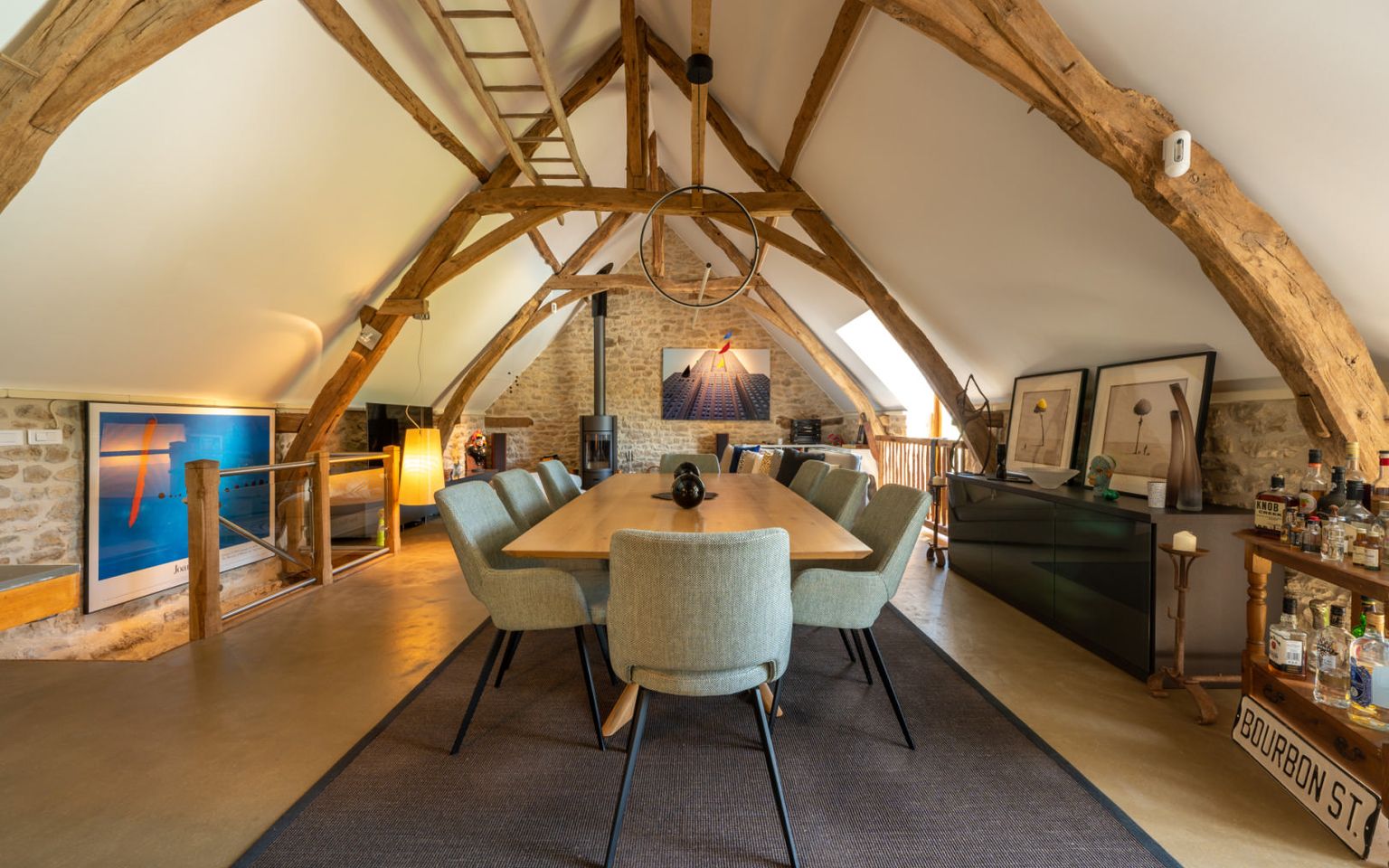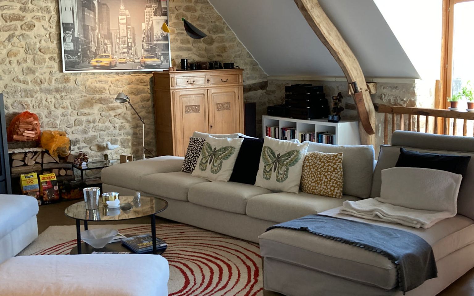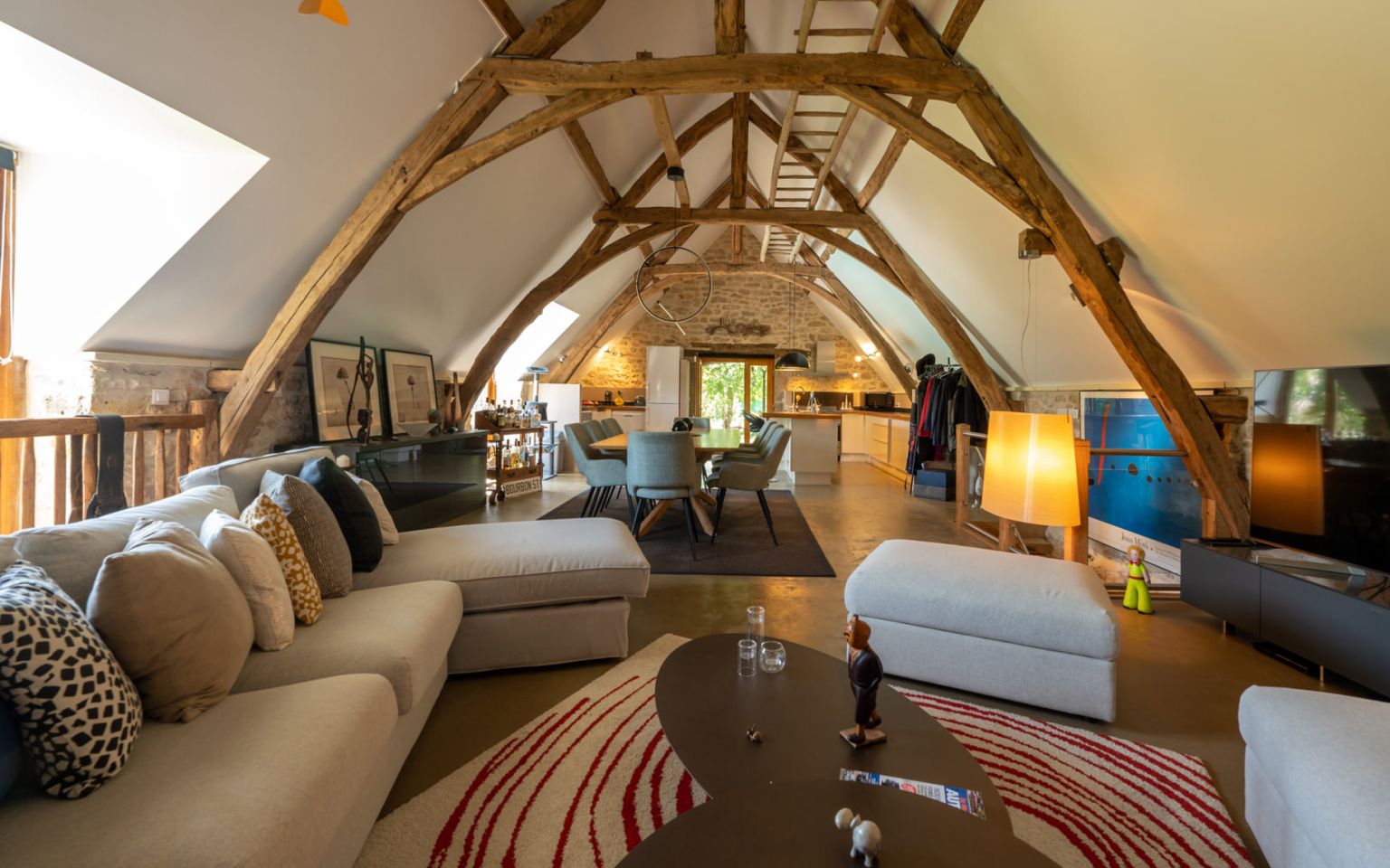 Ancienne Grange aménagée sur 2 niveaux - RDC. Entrée sur spacieuse pièce de vie avec espace cuisine ouvert sur 74 m². RDJ. Dégagement de 10 m² avec accès extérieur, 3 chambres de 15,2 m² avec salle d'eau wc de 4,24 m², 12,39 m² avec salle d'eau wc de 5,16 m² et 11,76 m² avec salle d'eau wc de 4,95 m².