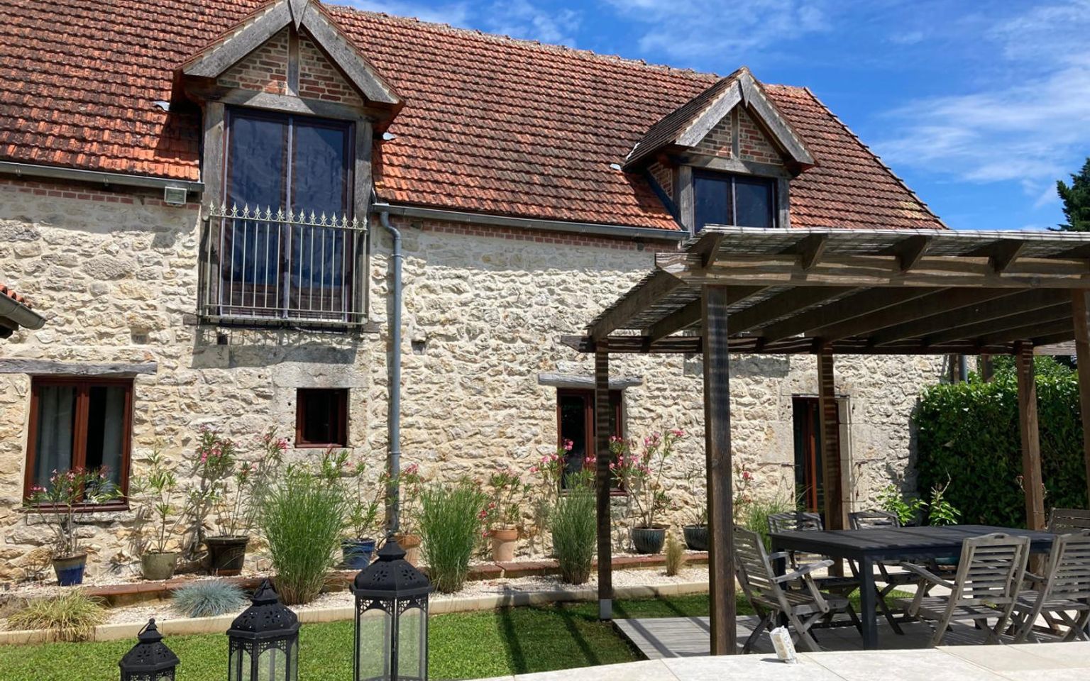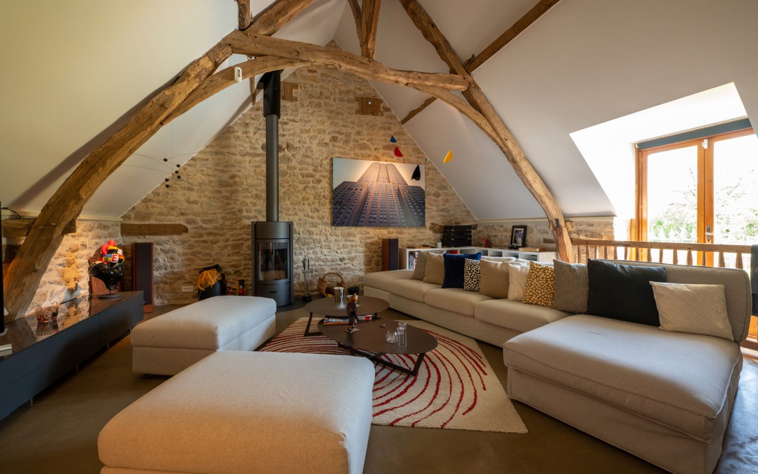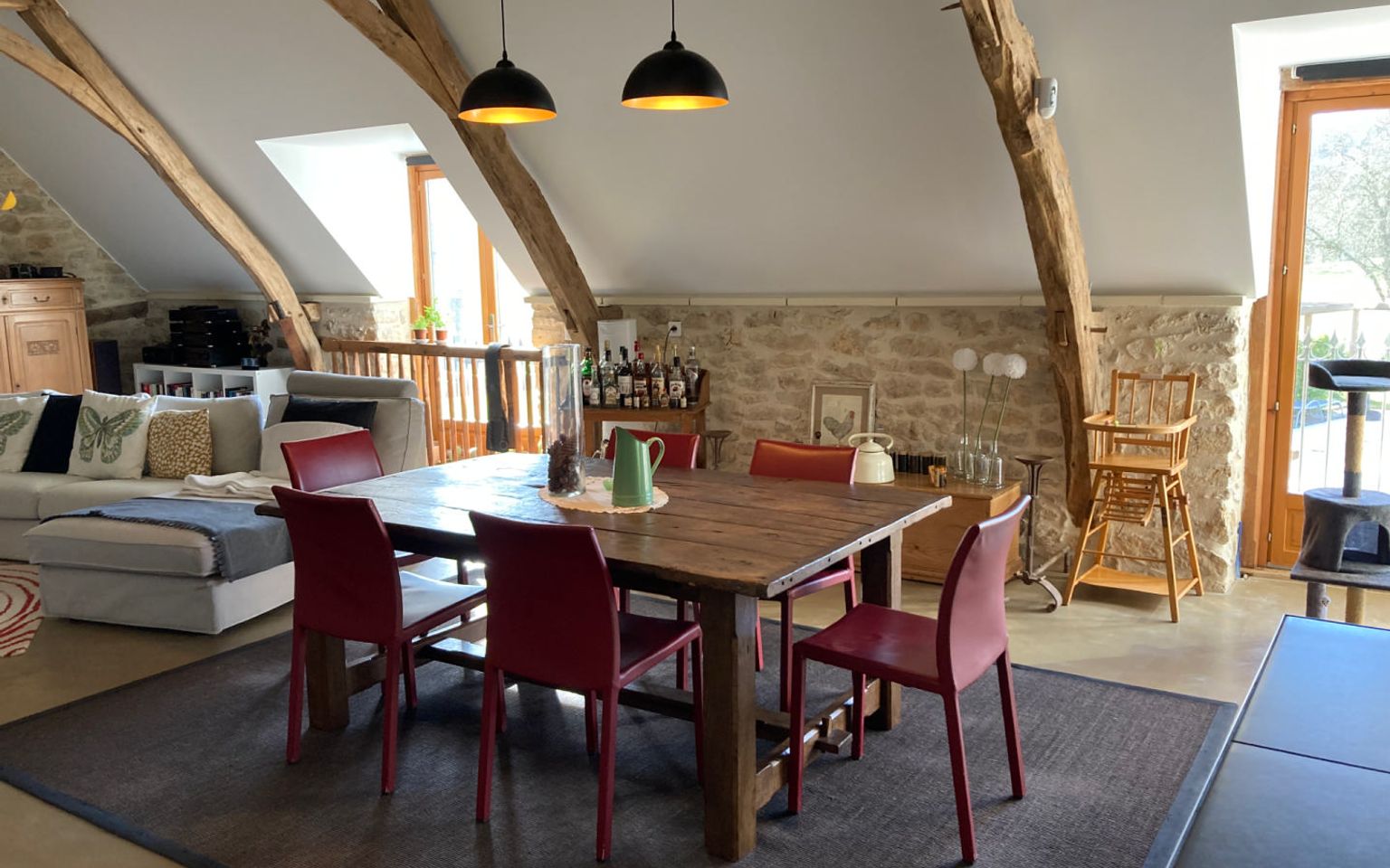 Maison Grange aménagée sur 2 niveaux - Rdc. Hall d'entrée de 10 m², 3 chambres de 15,2 m² avec salle d'eau wc de 4,24 m², 12,39 m² avec salle d'eau wc de 5,16 m² et 11,76 m² avec salle d'eau wc de 4,95 m²; séjour, cuisine avec poêle bois sur 74 m² au 1er.