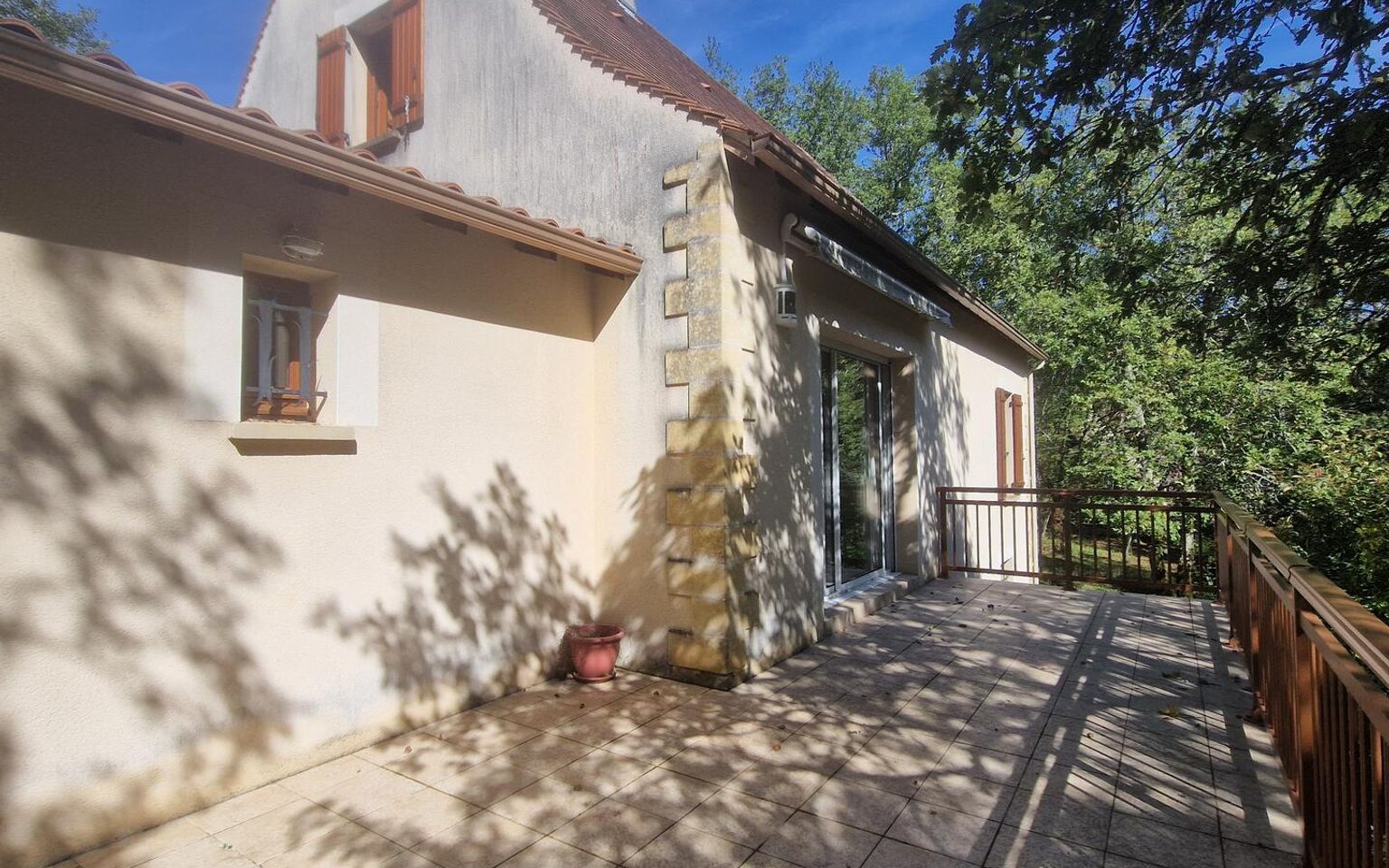 Dans une jolie clairière calme sur les hauteurs des Eyzies, cette maison périgourdine a été construite il y a 25 ans. Elle offre la possibilité de vivre de plain-pied avec une pièce à vivre traversante donnant sur la terrasse, une chambre et une salle d'eau. Deux chambres supplémentaires ainsi qu'un cabinet de toilette sont à l'étage.