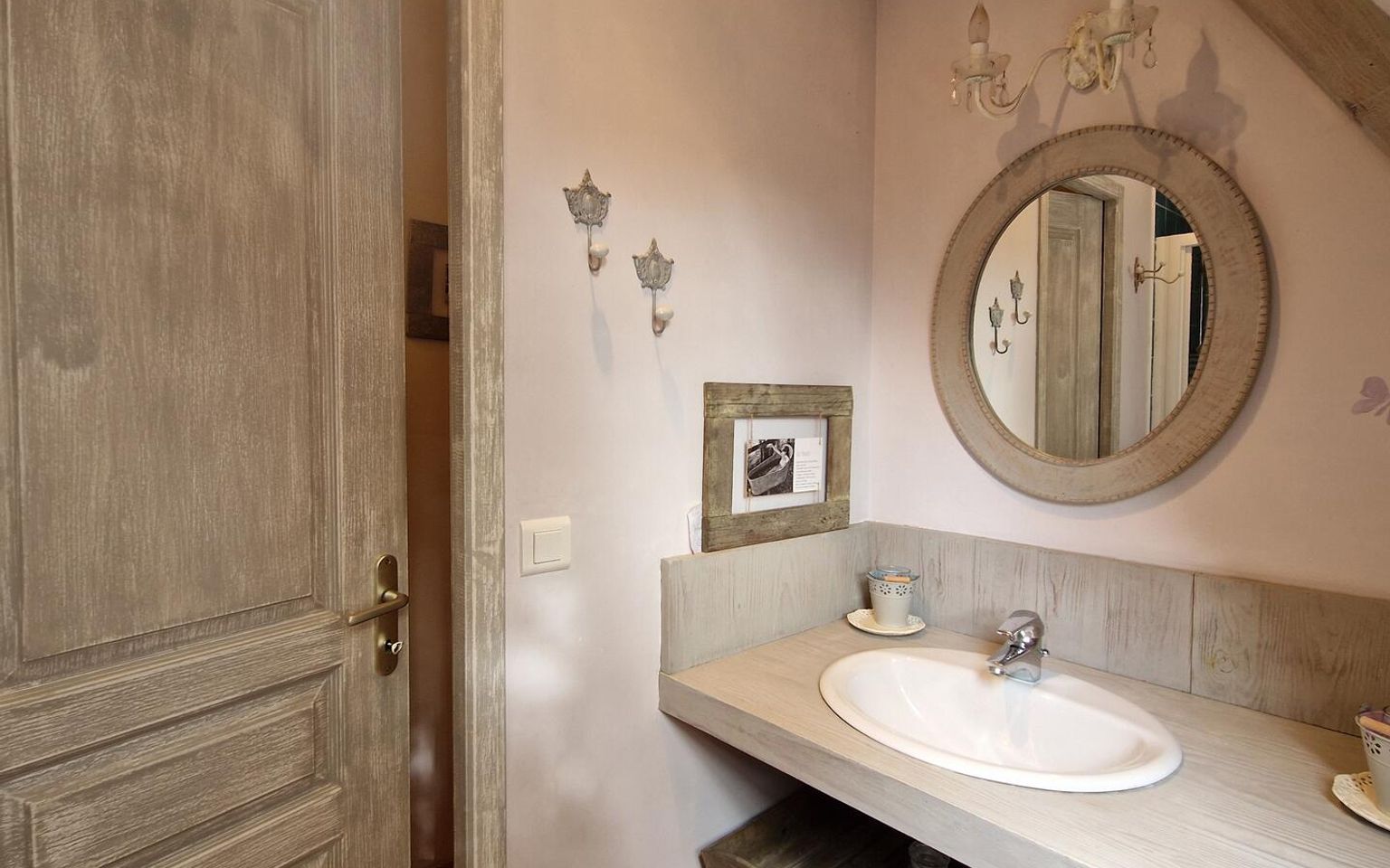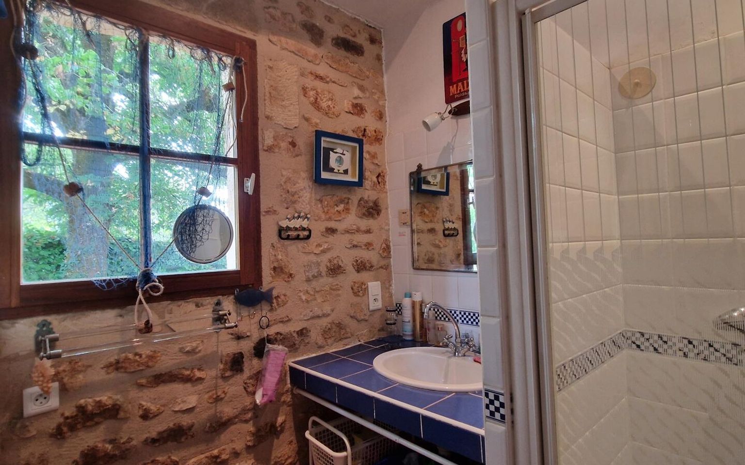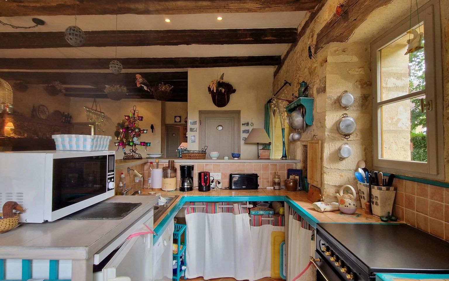 L'ensemble est rénové dans le style périgourdin, avec 5 chambres dont 2 de plain-pied. Chauffage électrique au sol. Garage attenant.