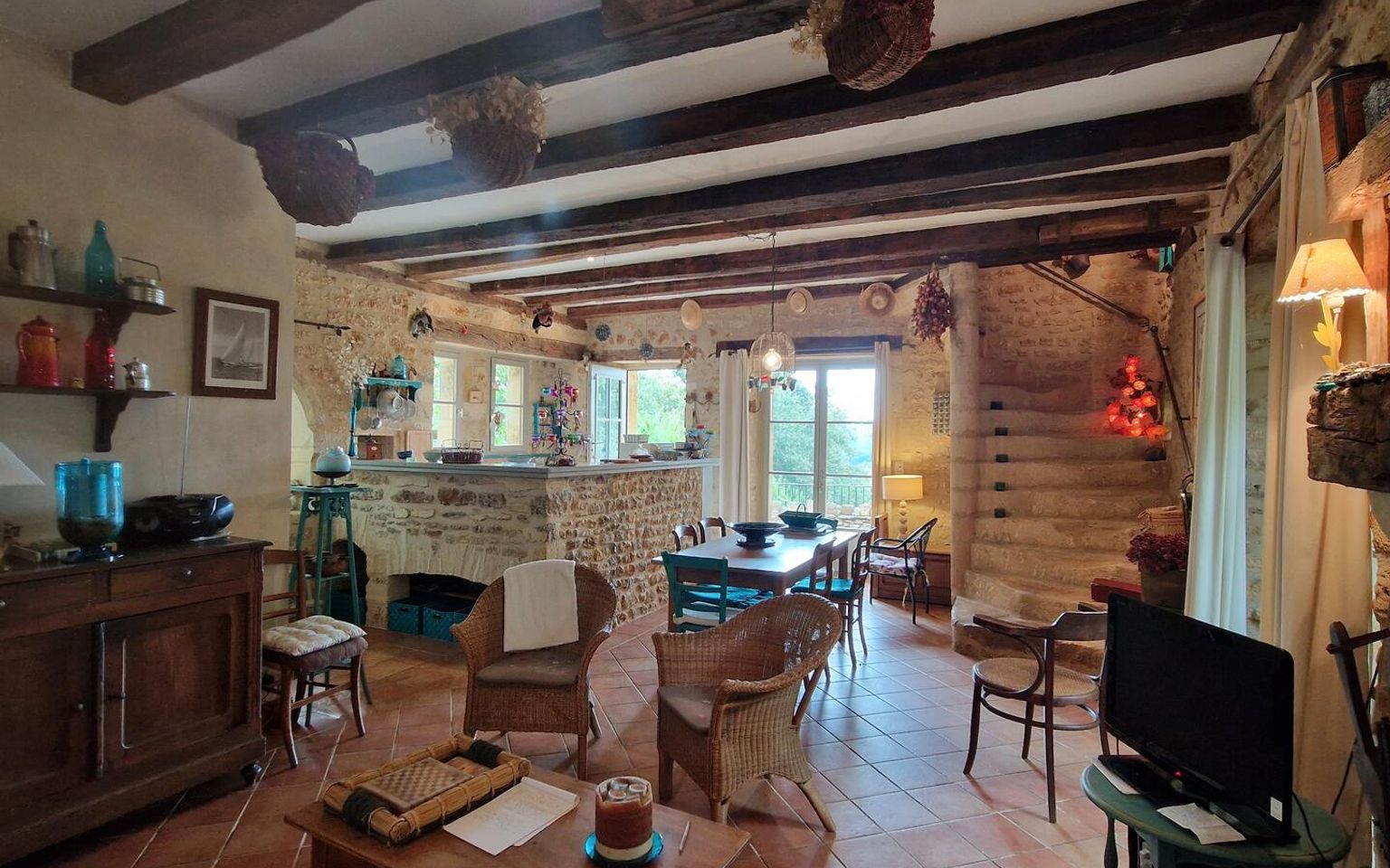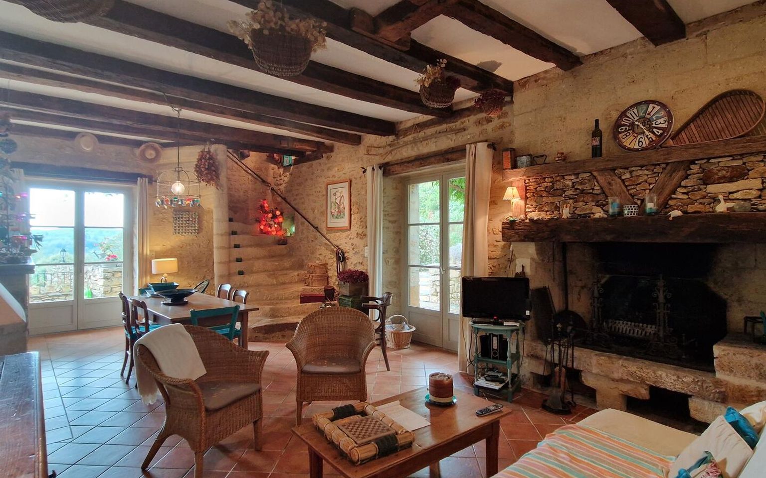 Dominant la vallée, à proximité de sites touristiques et de la Vézère, cette maison périgourdine de 120m² habitables est remplie de charme et d'authenticité : pierres apparentes, cheminée, escalier à vis en pierre.