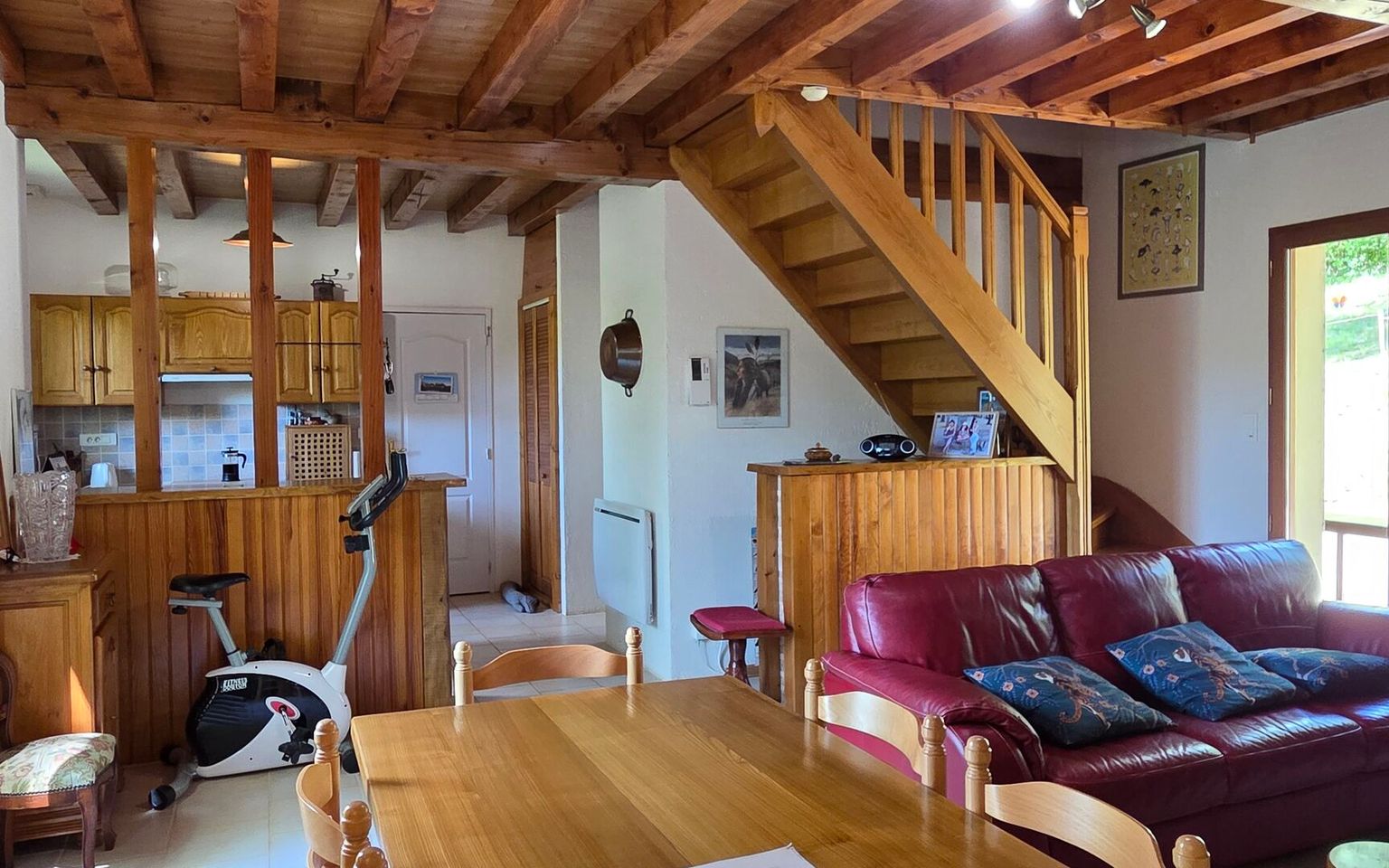 Implantée sur un vaste terrain de plus d’un hectare, la propriété permet de profiter pleinement de l’extérieur, avec la possibilité de se promener directement en forêt depuis chez soi. Un véritable atout pour les amoureux de nature.