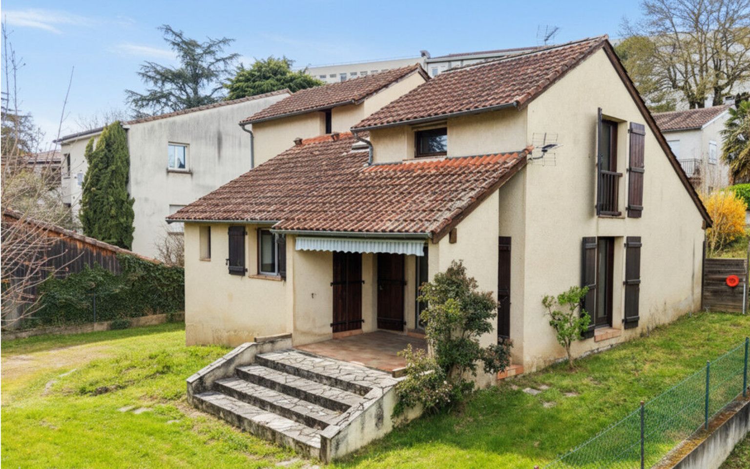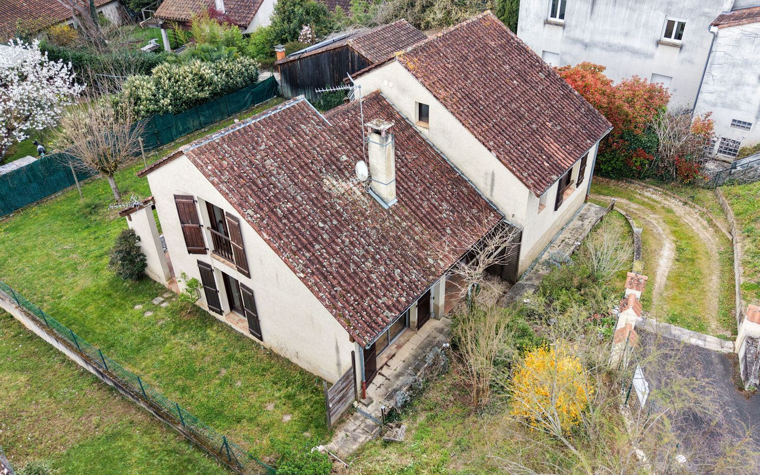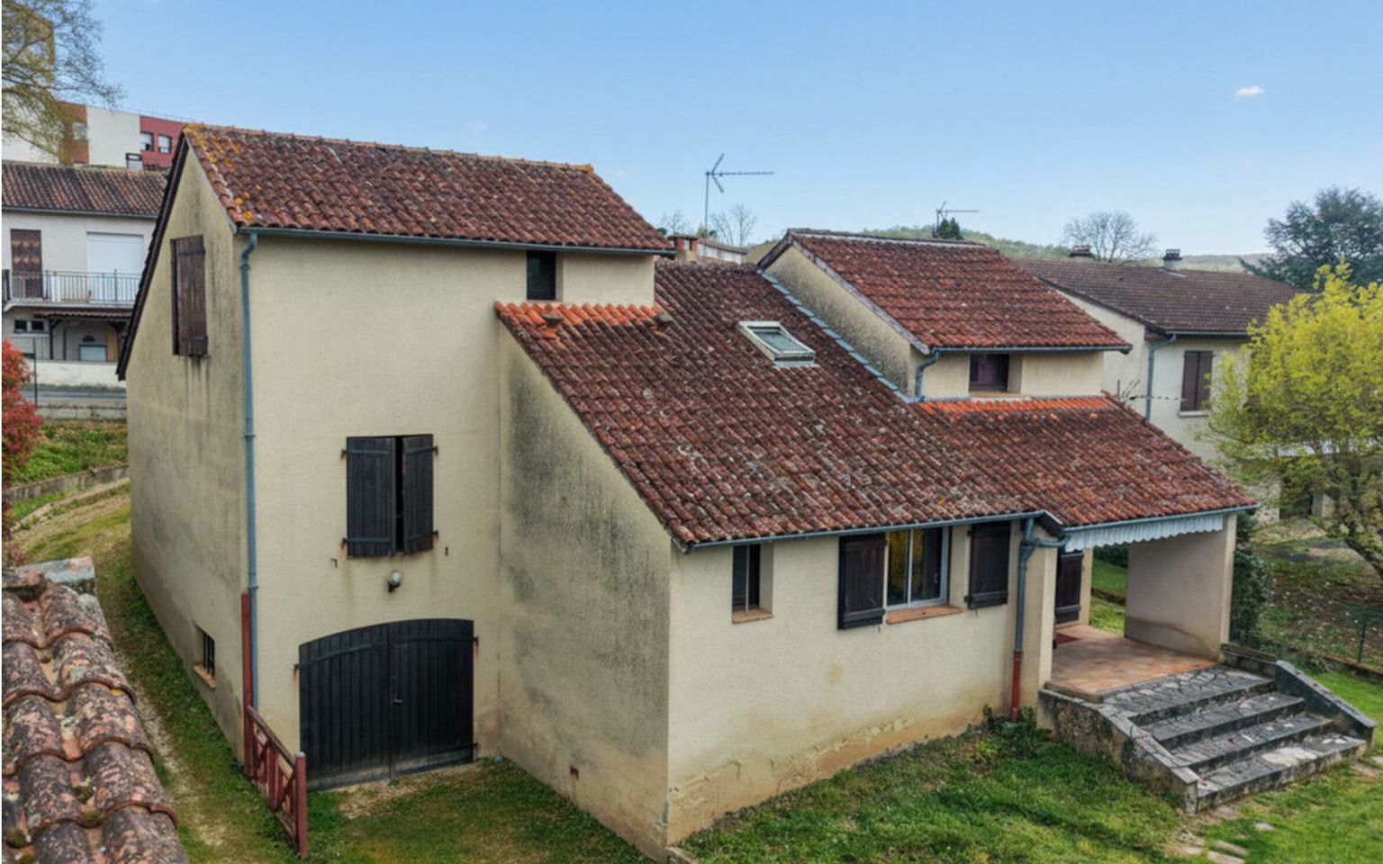 Située dans un quartier calme du centre de Souillac, à proximité immédiate des commerces et des services, cette maison atypique des années 70 séduit par son architecture originale et son implantation au cœur d’un agréable jardin clos de 600 m². Offrant de beaux volumes et une distribution fonctionnelle, elle constitue une opportunité idéale pour un projet de résidence principale ou secondaire, avec un fort potentiel de valorisation après rafraîchissement. Depuis l'entrée agréable, vous découvrez une belle pièce de vie lumineuse, agrémentée d’une cheminée, qui s’ouvre naturellement sur la terrasse couverte et le jardin, créant une continuité agréable entre intérieur et extérieur. La cuisine indépendante, complétée par une arrière-cuisine, apporte praticité et confort au quotidien, tandis que des toilettes indépendantes viennent compléter ce niveau. Le premier demi-niveau propose deux belles chambres, confortables et bien proportionnées, qui se partagent une salle de bains équipée d’une baignoire et d’une douche, ainsi que des toilettes indépendantes. À l’étage, une pièce palière de plus de 10 m² offre un espace idéal pour un bureau ou un coin lecture. Une grande chambre avec salle de bains privative, comprenant baignoire et douche, garantit intimité et confort. Une vaste mezzanine ouverte sur le séjour permet d’envisager une bibliothèque, un espace détente ou une chambre d’appoint supplémentaire, toilettes indépendantes également sur ce niveau. En rez-de-jardin, un garage et un atelier viennent enrichir les prestations de cette maison, offrant des espaces de rangement et de bricolage appréciables. Le jardin clos de 600 m², facile d’entretien, constitue un véritable écrin de verdure au cœur de la ville. Raccordée au tout-à-l’égout et éligible à la fibre optique, cette maison offre une base saine et un fort potentiel après modernisation, idéale pour les acquéreurs en quête d’un bien de caractère à personnaliser dans un environnement calme et recherché à Souillac. Les informations sur les risques auxquels ce bien est exposé sont disponibles sur le site Géorisques : www.georisques.gouv.fr