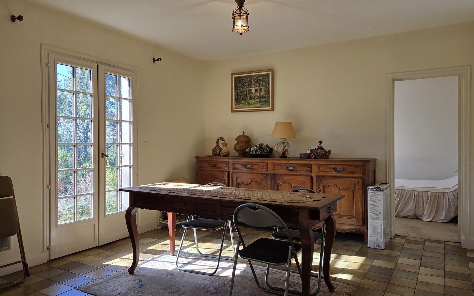 Découvrez cette maison de plain-pied offrant un potentiel et une vue dégagée sur la campagne. Cette propriété est située au cœur du Périgord Noir. Cet emplacement offre l'accès aux sites touristiques majeurs de la région (Sarlat, Vallée de la Dordogne) et peut convenir à un usage résidentiel ou à un projet de location saisonnière. Nichée sur un vaste terrain de 8259 m² agrémenté d'un jardin et de beaux arbres, elle vous garantit calme et intimité. L'intérieur dispose d'un salon/séjour de 50 m² et de trois chambres. Le véritable atout pour l'agrandissement est son grand grenier aménageable de 45 m², idéal pour créer une suite parentale ou des pièces supplémentaires. En complément, vous bénéficiez d'une dépendance de 31 m² avec un carport, parfaite pour un atelier ou du stockage. La maison nécessite un bon rafraichissement pour la mettre au goût du jour et aux normes actuelles (chauffage électrique, assainissement individuel). Les informations sur les risques auxquels ce bien est exposé sont disponibles sur le site Géorisques: www.georisques.gouv.fr
