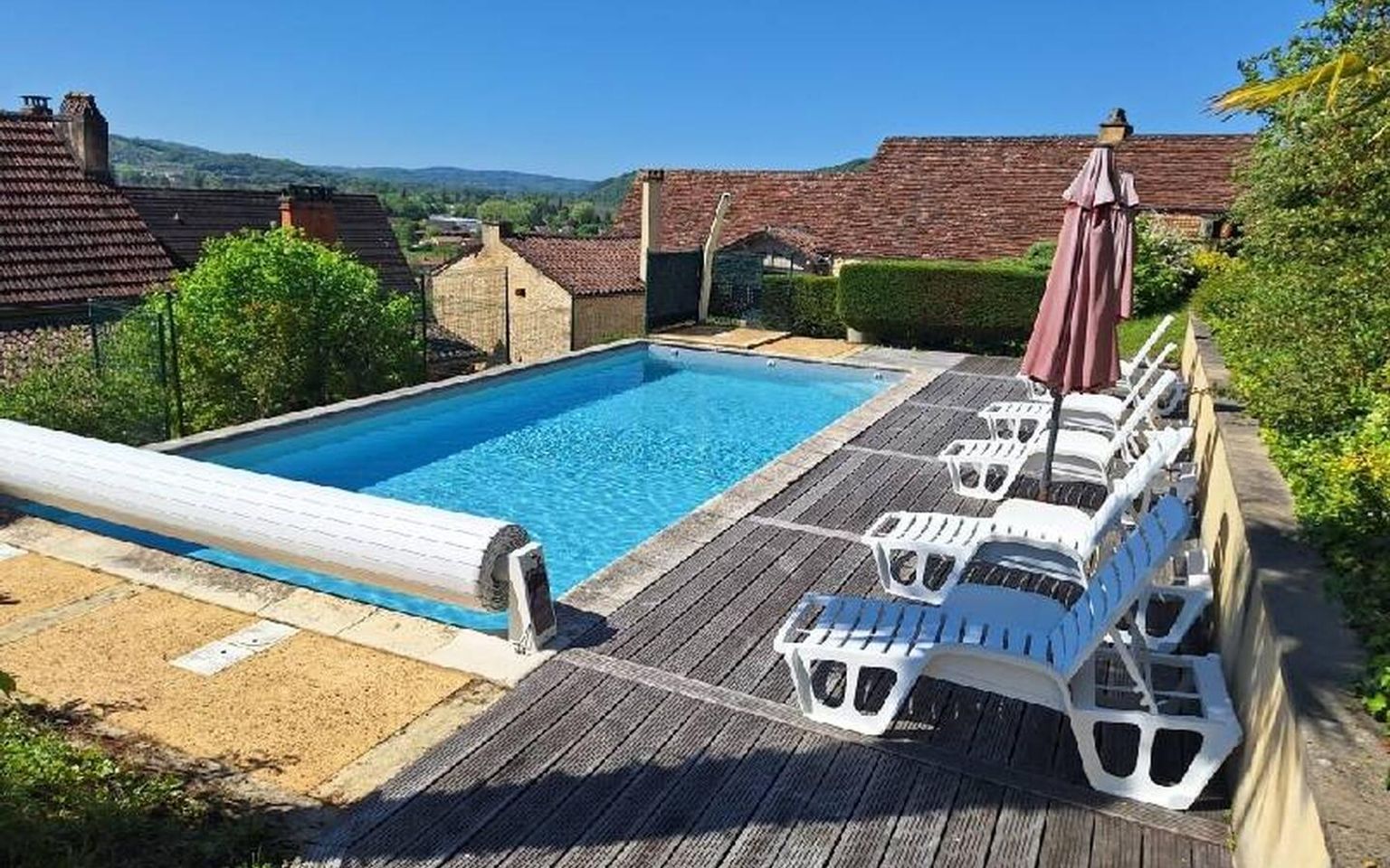 Belle maison ancienne en pierre située aux abords d'un village médiéval. Organisée sur deux étages la maison offre au rez-de-chaussée : une grande cuisine équipée / séjour ouvert sur la terrasse, 2 chambres, toutes deux avec sa salle de bain privée, un toilette indépendant. Au premier étage : une belle pièce à vivre avec salon, une grande chambre double avec cheminée, et un accès extérieur, deux couchages en mezzanine accessibles par la chambre double ou directement par le jardin, une salle de bain, toilette séparé. La piscine (chauffée + volet) est idéalement située et profite du soleil tout au long de la journée. Le terrain de plus de 3 810 m2 est arboré et agréable. Garage pour 1 voiture et espace parking en face de la maison. Malgré la proximité du village avec ses commerces, ses bars et restaurants, la maison est au calme ! Un petit bijou ! Les informations sur les risques auxquels ce bien est exposé sont disponibles sur le site Géorisques : www.georisques.gouv.fr