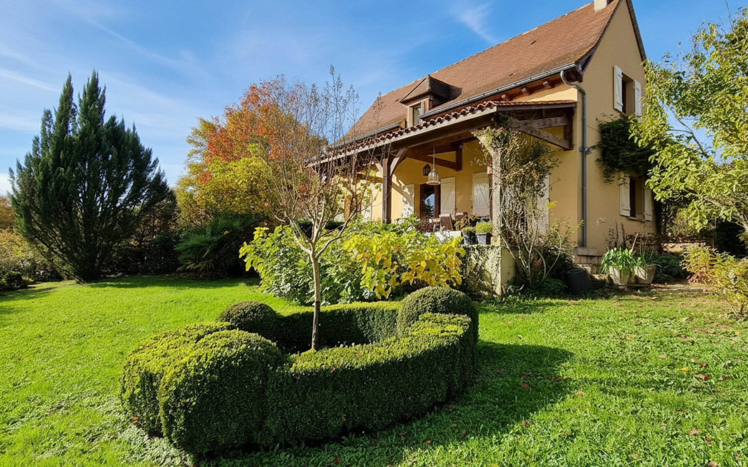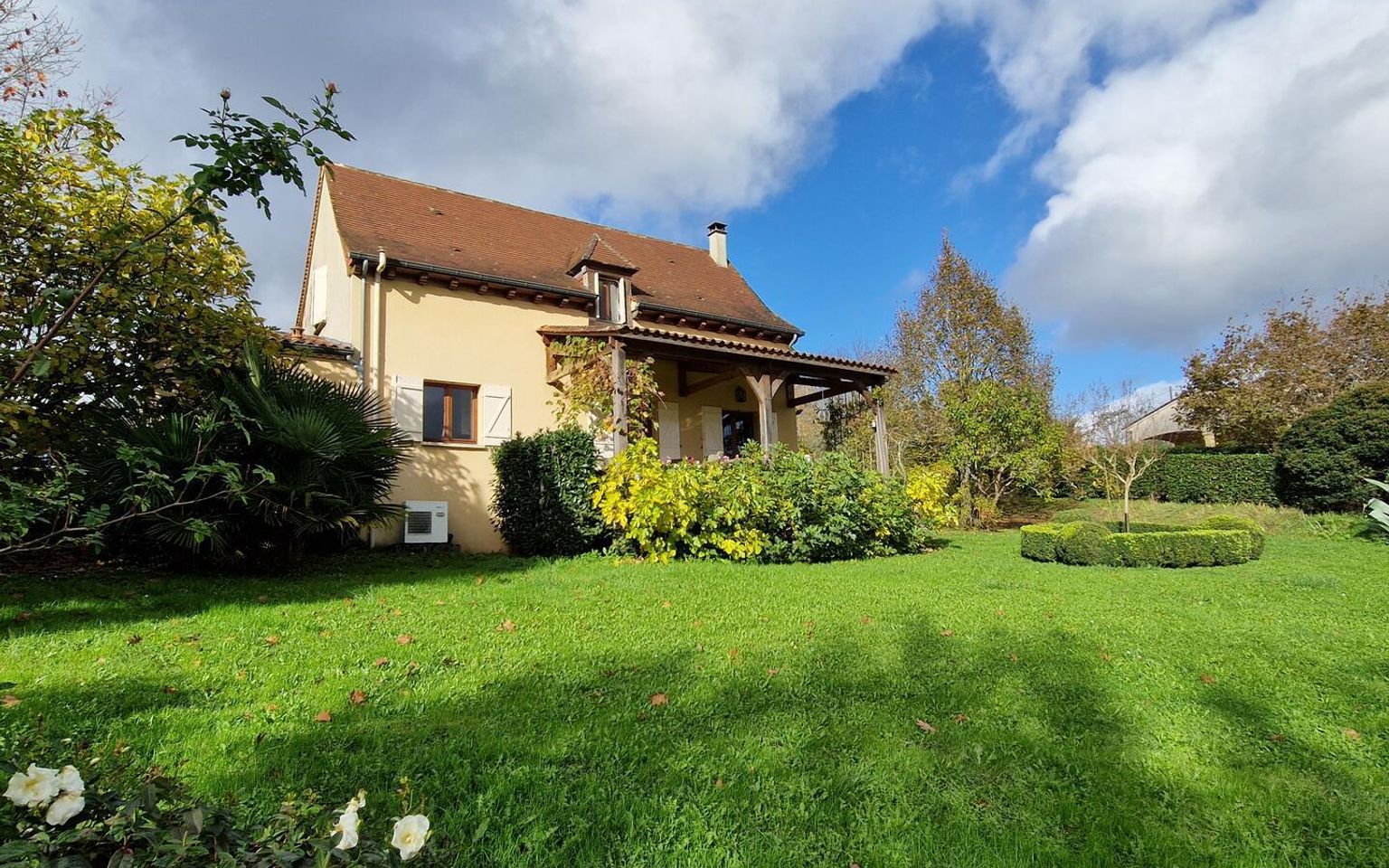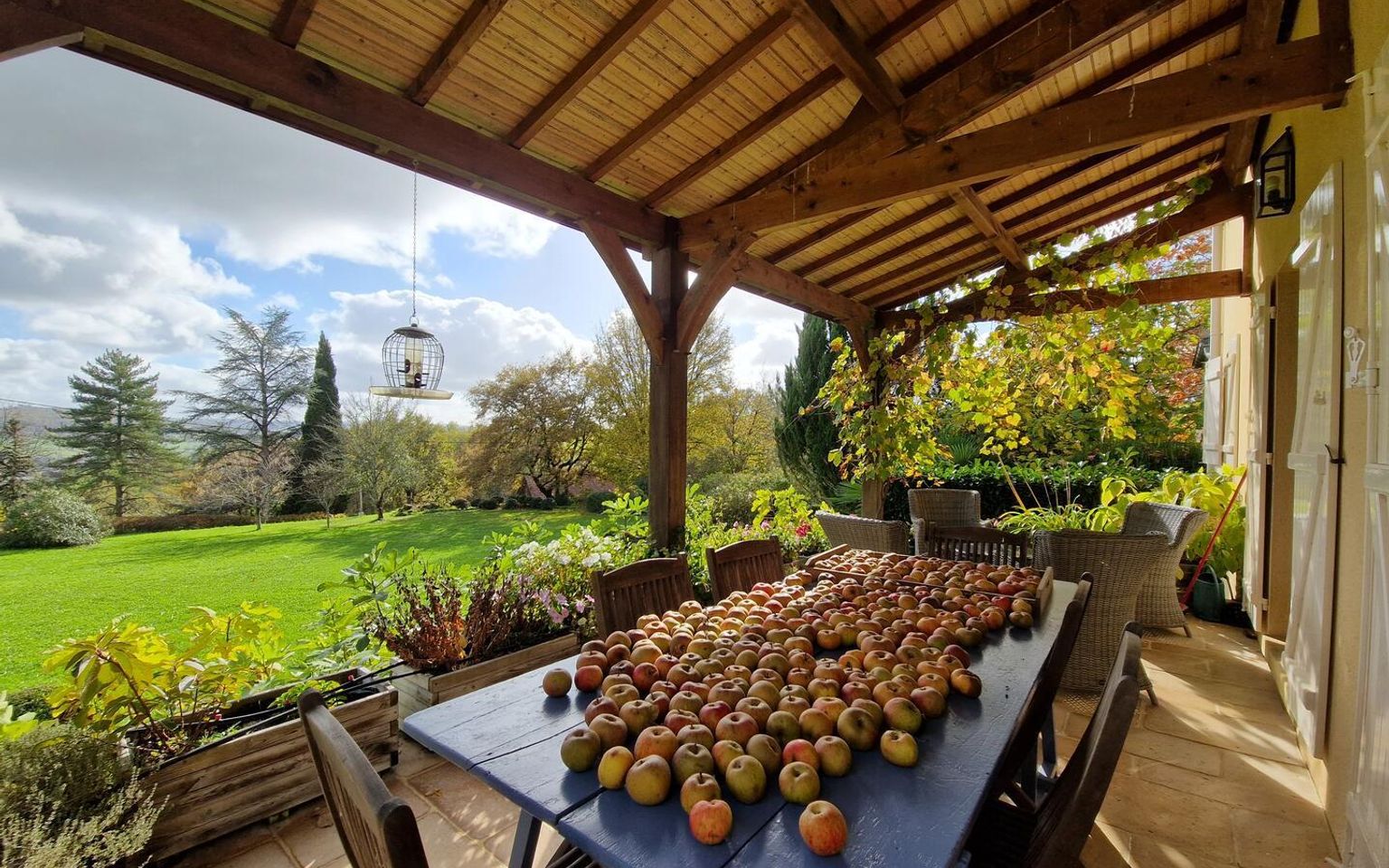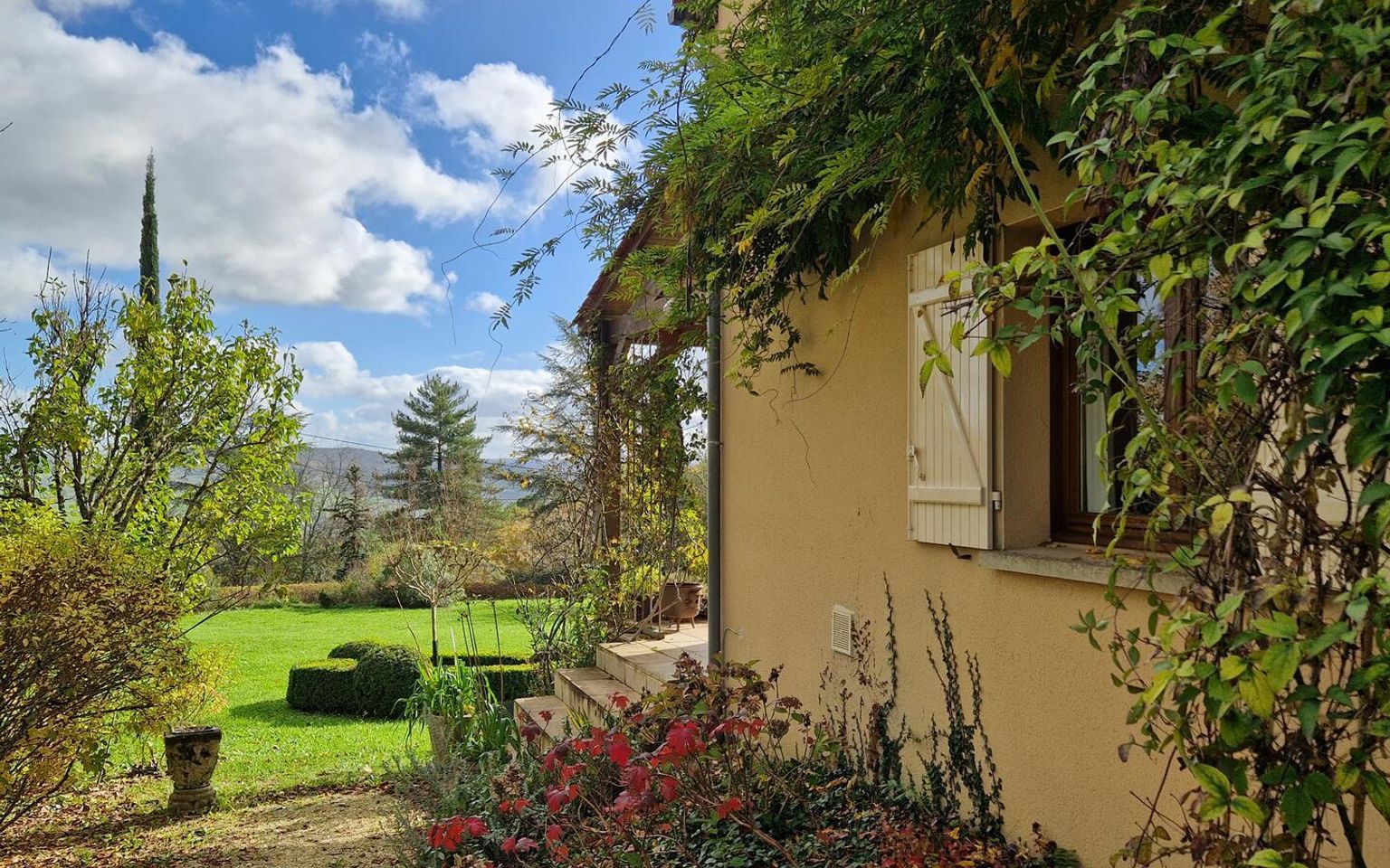 Belle harmonie pour cette maison des années 2005, confortable, lumineuse avec sa terrasse couverte et vue sur la vallée ainsi que son terrain avec accès par allée privée, bien réparti et arboré. A env 4km des commerces au calme et non isolée. C'est une maison en parfait état, nous entrons sur une Pièce à vivre avec cheminée et poele, plafond poutres, cuisine attenante aménagée, qui cotoient une large terrasse couverte où vous passerez du temps, contemplatif de cette belle vue ou pour de conviviaux déjeuners. Un cellier, wc, et garage terminent le rez de chaussée. A l'étage efficace : 3 chambres, salle d'eau, grands placards. Qui plus est la maison est performante, à l'heure où la performance énergétique compte, elle est classée " C". Près de la maison annexe bois pour le matériel et carport. Au sud piscine hors sol de 2024 et hormis un jardin bien paysager un verger très productif ! on imagine déjà la bonne odeur d'une tarte aux pommes ! ...