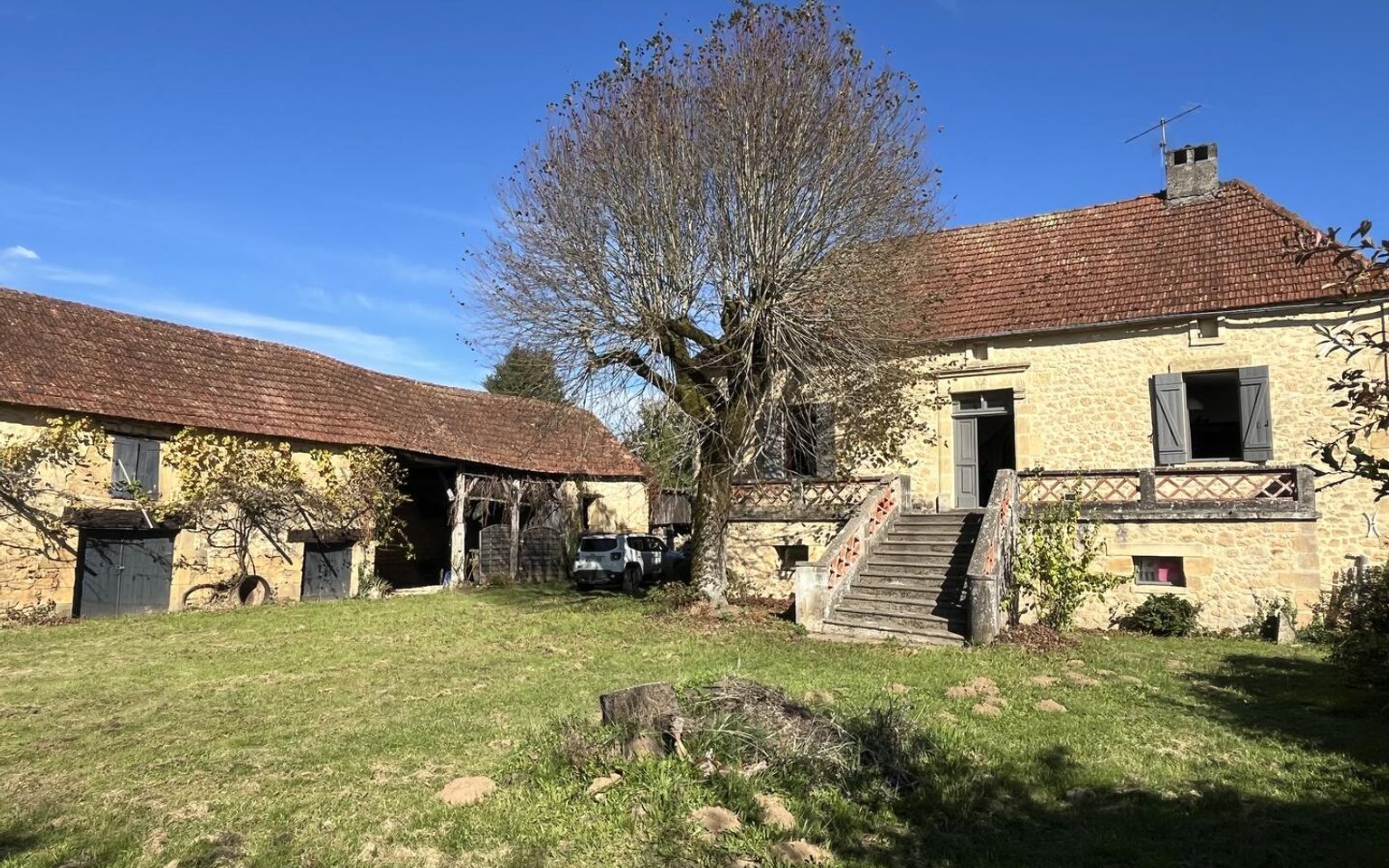 Proche de la rivière Dordogne, entre Sarlat et Souillac, bel ensemble sur deux hectares avec maison principale et grande grange.