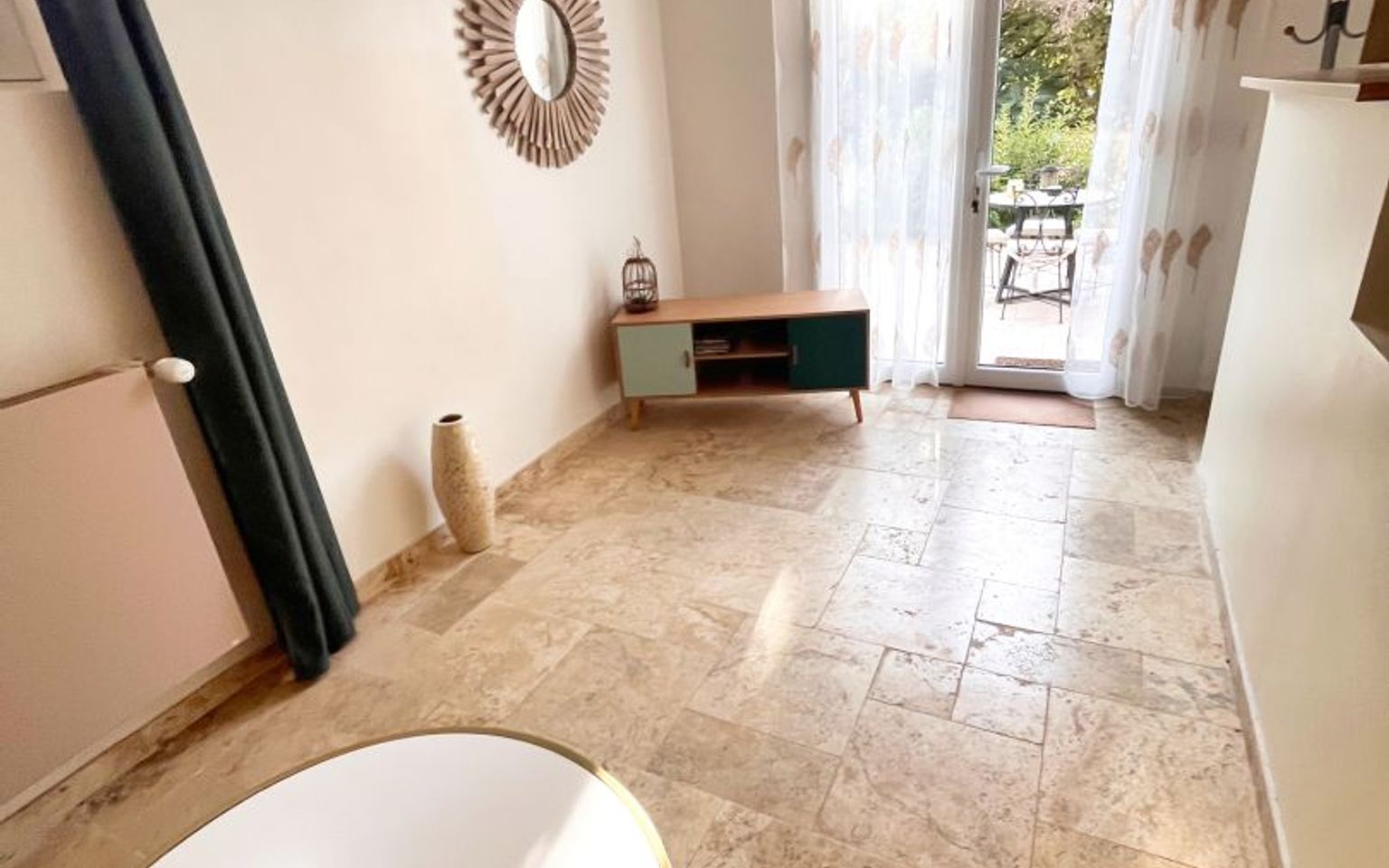 Située sur les hauteurs, dans un quartier résidentiel de Sarlat, à l’orée de la forêt et à proximité des commerces, cette maison familiale claire et spacieuse, entièrement rénovée en 2021, offre une surface généreuse ainsi qu’un appartement indépendant ( 215 m2 au total) et une piscine chauffée. Elle dispose d'une entrée avec WC invités , une pièce de vie de 72 m² avec une cuisine ouverte de très belle qualité, une salle à manger et un salon doté d’une magnifique cheminée en pierre ouverte avec un accès direct à une terrasse intime. Au demi niveau un palier dessert deux chambres ainsi qu’une salle de bains avec WC ; Au premier étage se trouvent une grande chambre en suite avec salle d’eau et WC , deux autres chambres avec placards et une salle d’eau supplémentaire. Le garage de belle hauteur permet d’accueillir plusieurs véhicules. Un appartement indépendant de plain pied de type T2 en parfait état complète l’ensemble et bénéficie également d’une terrasse . Les extérieurs s’étendent sur environ 1000 m² et offrent plusieurs terrasses et une piscine chauffée. Double vitrage, chauffage pompe à chaleur, tout à l'égout Les informations sur les risques auxquels ce bien est exposé sont disponibles sur le site Géorisques : www.georisques.gouv.fr