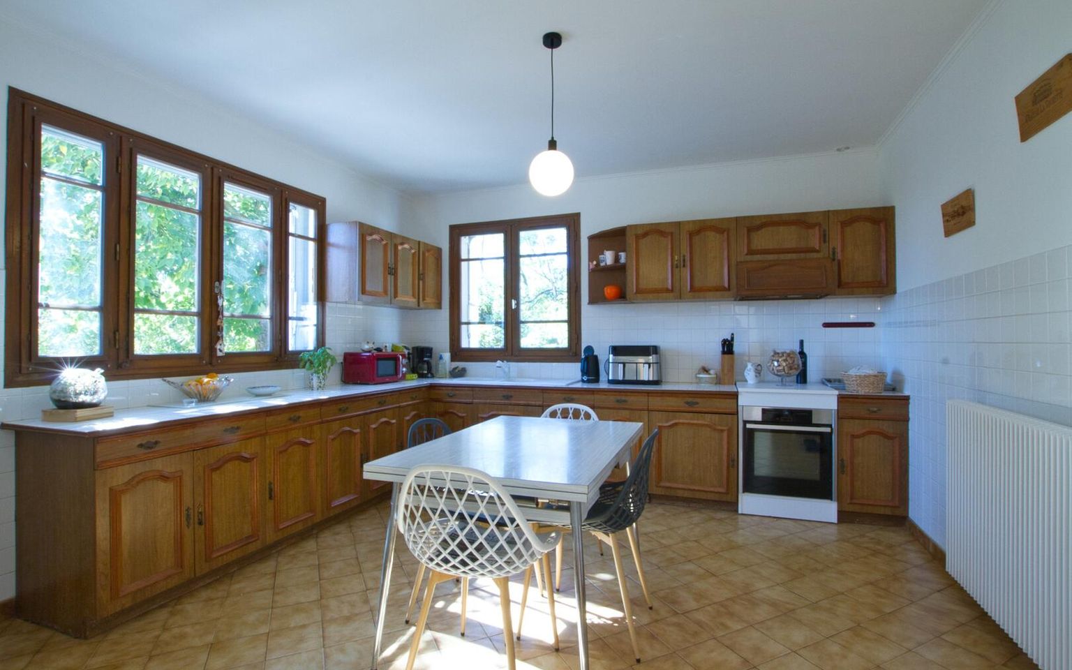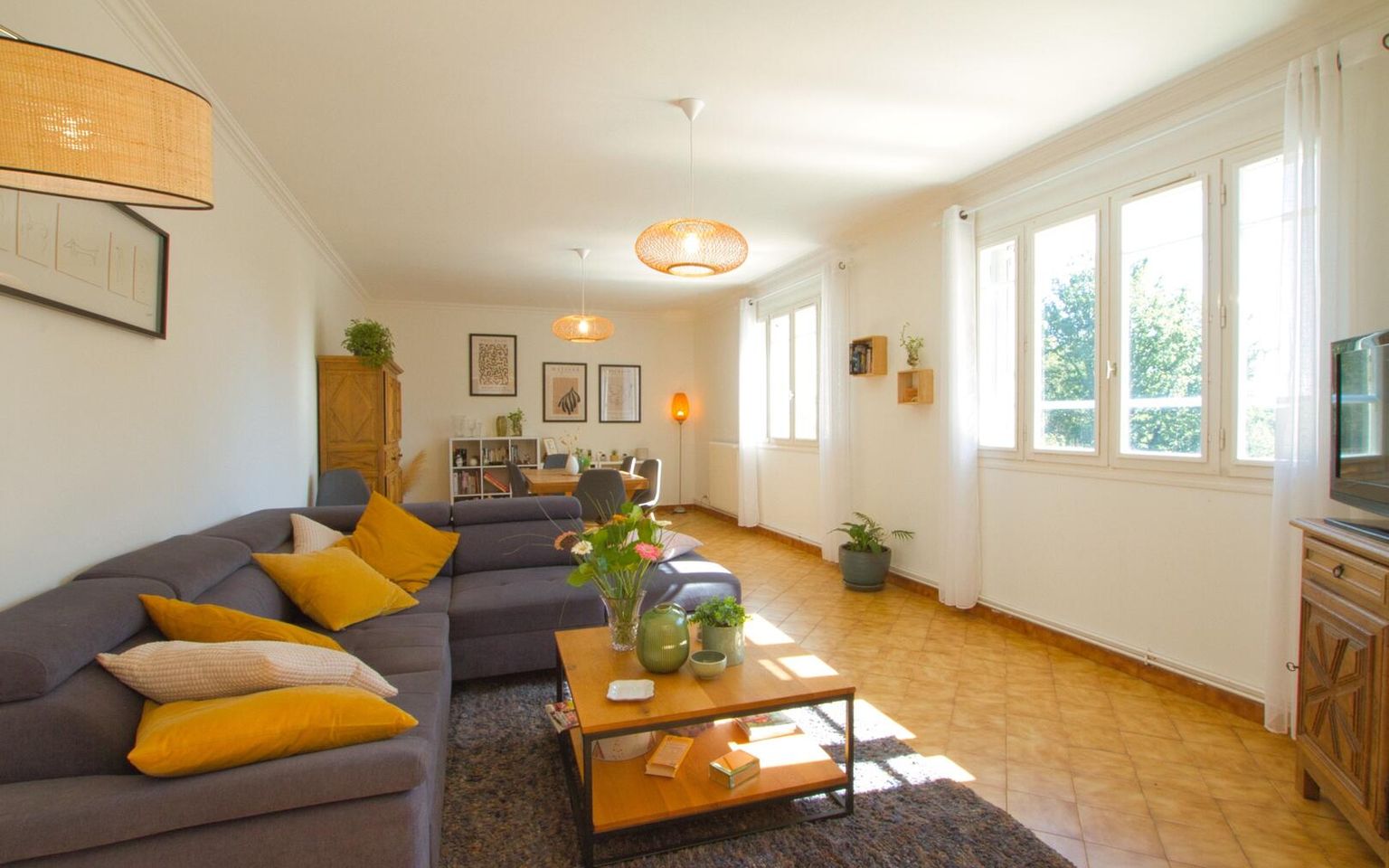 Elle se compose d’une entrée desservant une cuisine indépendante avec arrière-cuisine, un séjour-salon lumineux de 32 m², trois chambres, une salle d’eau et des WC séparés.