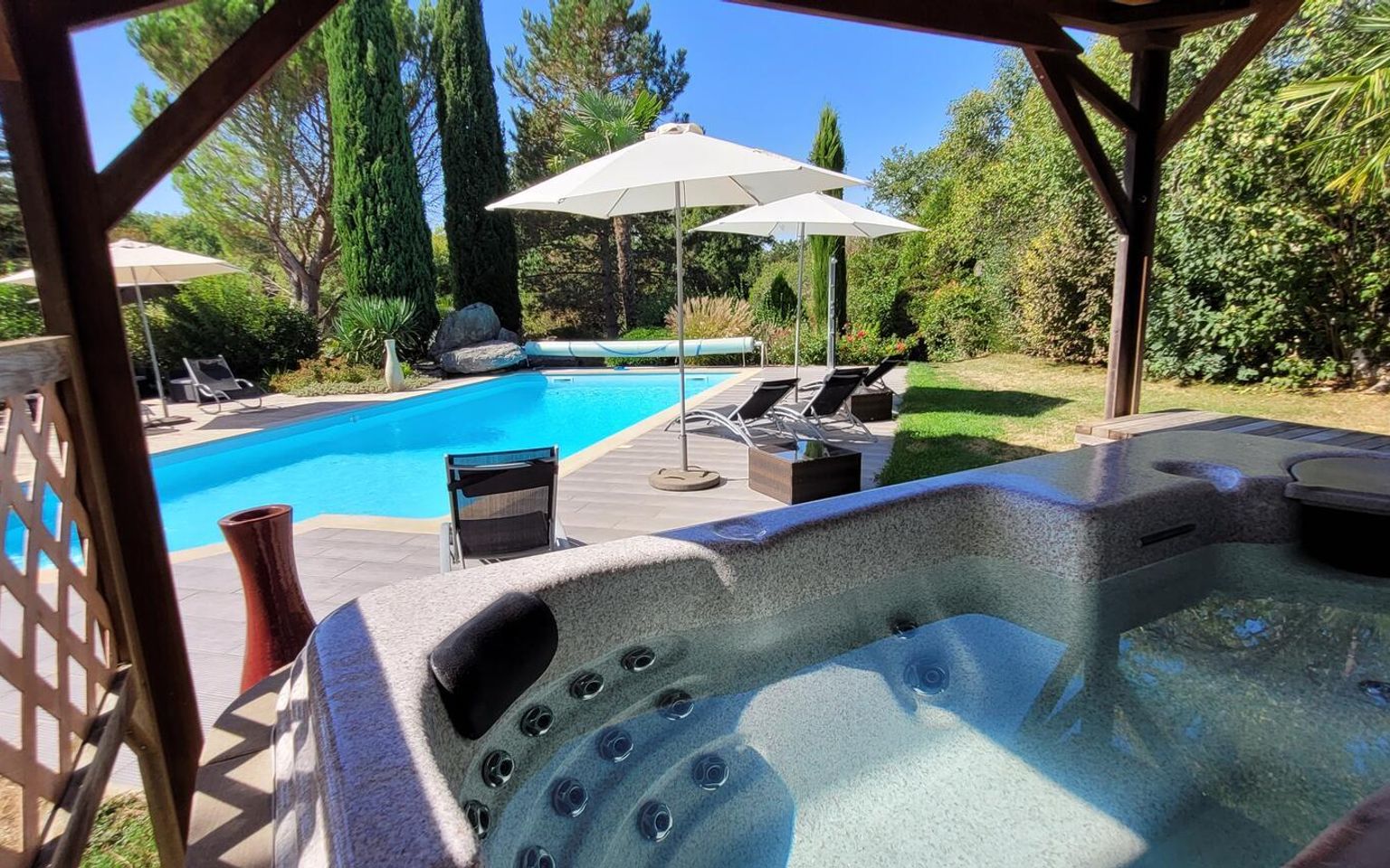 Au cœur d’une campagne paisible mais non isolée, cette superbe demeure de caractère offre un cadre de vie privilégié mêlant charme authentique, volumes généreux et prestations de qualité. Actuellement exploitée en chambres d’hôtes, elle se prête parfaitement à une activité touristique comme à une grande maison familiale. Dès le rez-de-jardin, on découvre une buanderie avec cellier, ainsi que deux vastes chambres de 27 m² et 20 m², toutes deux dotées de leur salle d’eau privative. Une cuisine conviviale complète cet espace, tout comme un magnifique ensemble salon, salle à manger avec souillarde, où charme de l'ancien et confort moderne se conjuguent harmonieusement. À l’étage, trois grandes chambres prolongent la maison. La première propose 29 m² de confort, la seconde offre un espace exceptionnel de 48 m² avec dressing, salle d’eau et WC, tandis que la troisième, de 25 m², dispose également de son WC. L’ensemble crée un lieu de vie chaleureux, idéal pour accueillir famille, amis ou visiteurs. Le sous-sol abrite une chaufferie de 28 m². À l’extérieur, une magnifique grange entièrement réhabilitée vient enrichir le potentiel du bien. Son rez-de-chaussée développe 66 m², tandis que l’étage, totalement aménagé, propose une cuisine d’été, une pièce de rangement, un WC, une salle de bains et une suite de 38 m². Cet espace indépendant est parfait pour créer un gîte, une extension de l’activité touristique ou encore un logement confortable pour des invités. Côté équipements, la propriété bénéficie d’un DPE classé C, d’une citerne, d’une fosse septique avec avis favorable, d’un jacuzzi, d’une connexion internet en fibre optique, d'une piscine 5 x 10 mètres au sel et d'un terrain de pétanque. Le tout se situe dans un environnement calme, verdoyant et bénéficiant d’une vue agréable, à seulement quelques minutes de Lacapelle-Marival. Cette propriété est un véritable coup de cœur : une maison splendide, chaleureuse, authentique, dotée de dépendances remarquablement aménagées et offrant d’innombrables possibilités pour une vie familiale ou professionnelle sous le signe du bien-être. Les informations sur les risques auxquels ce bien est exposé sont dsponibles sur le site Géorisques : www.georisques.gouv.fr