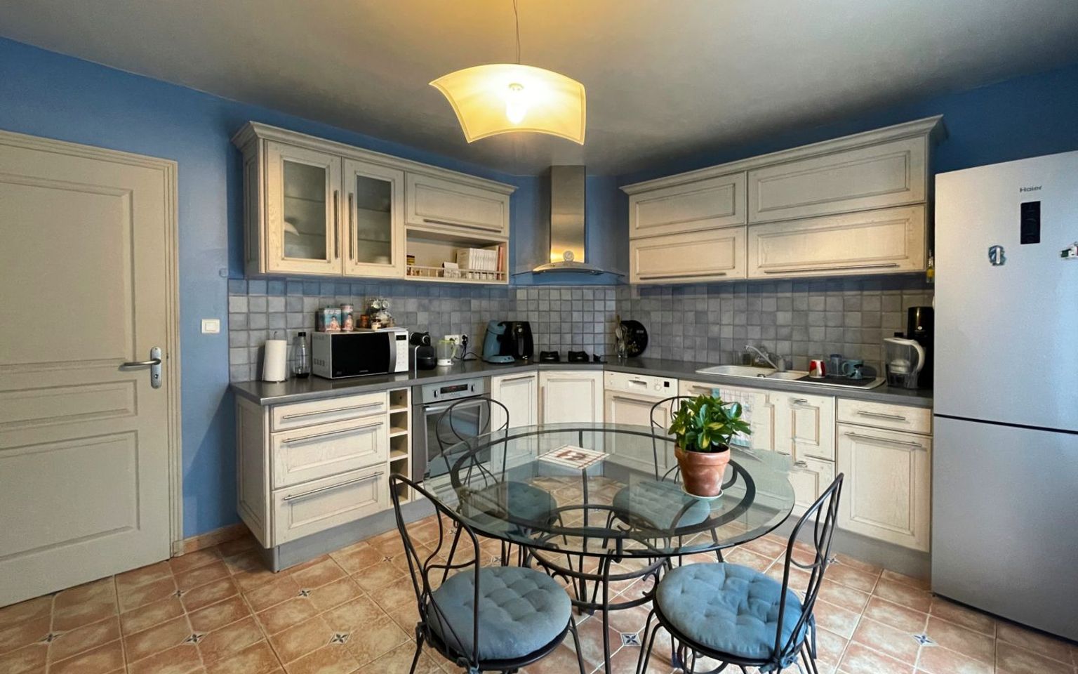 Elle est agencée comme suit : Une pièce à vivre de 27,84 m2 avec insert et belle poutraison, une cuisine indépendante équipée, une buanderie/cellier, une chambre, une salle de bain et un wc indépendant ; A l'étage: deux chambres un dressing, une salle d'eau wc séparés, bureau ainsi qu'une mezzanine donnant sur un balcon, agréable terrasse et garage attenant.