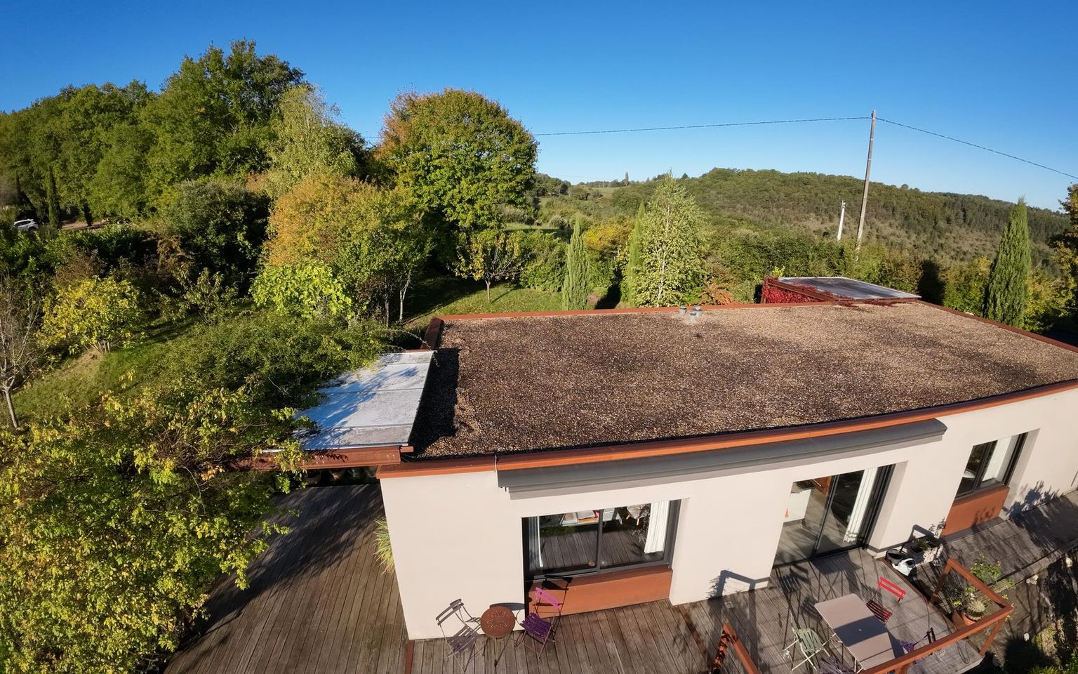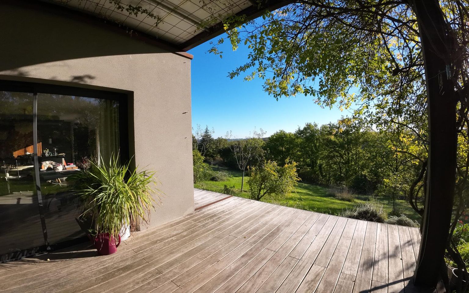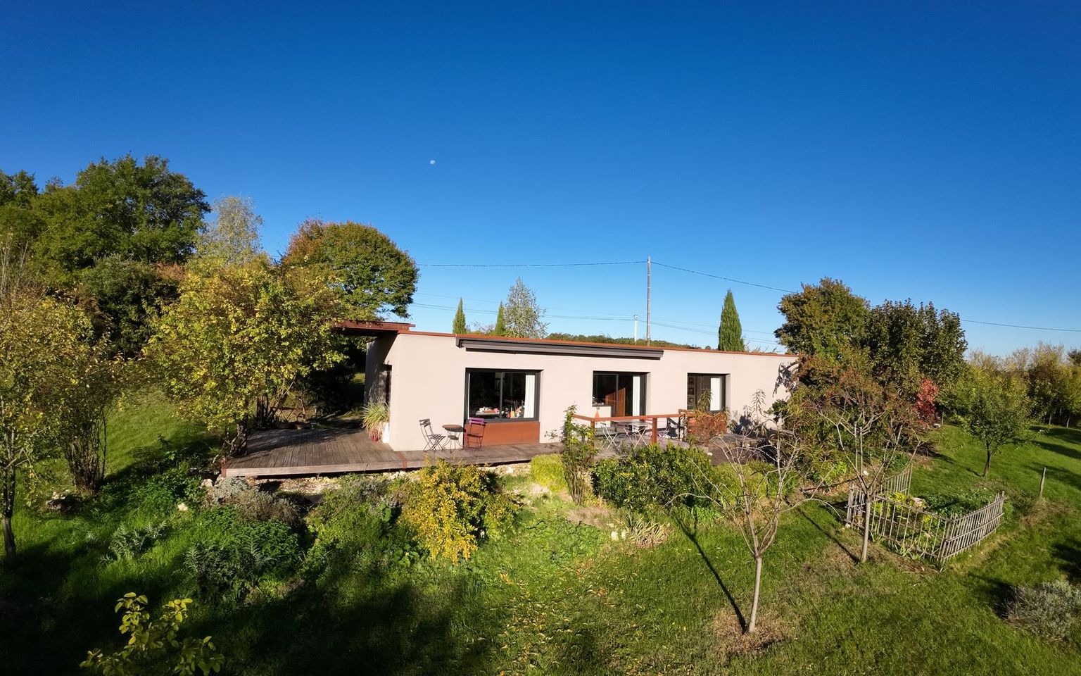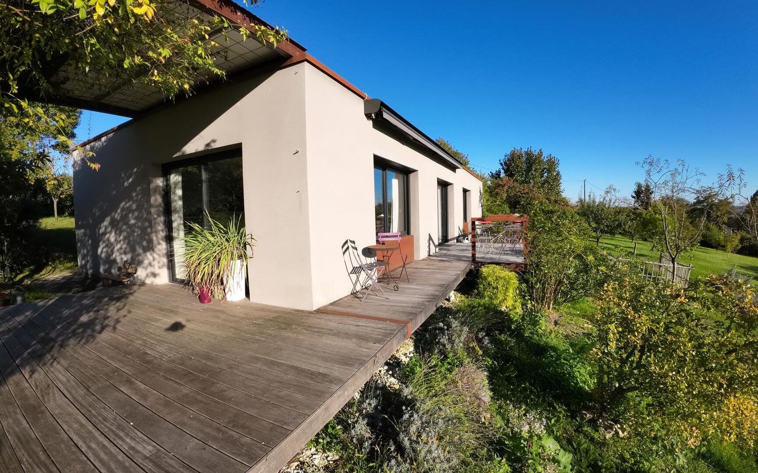 Située dans un environnement paisible et verdoyant, cette belle maison contemporaine construite il y a tout juste 10 ans séduit par son architecture moderne, ses volumes généreux et ses prestations de qualité. D’une surface habitable d’environ 98 m², elle propose une vaste pièce de vie lumineuse de 34 m², baignée de lumière grâce aux grandes baies vitrées et offrant un accès direct aux terrasses et au jardin. Une cuisine ouverte entièrement équipée avec îlot central prolongée par un coin repas convivial et fonctionnel. Deux chambres de 16,5 m² et 11m² avec placards intégrés et vue sur le jardin. Une salle de bains moderne de 7,5 m² avec douche à l’italienne et baignoire. Un cellier pratique de 8,5 m². À l’extérieur, construction de qualité avec façades rehaussées d’acier Corten, effet rouillé esthétique et durable. Le terrain d’environ 4 700 m², arboré et paysagé, offre un cadre de vie serein et préservé avec plusieurs terrasses agrémentées de voiles d’ombrage et d’un store banne. L’orientation sud-est permet de profiter d’une excellente luminosité tout au long de la journée. Un abri voiture attenant et un espace de stationnement complètent le tout. Les informations sur les risques auxquels ce bien est exposé sont disponibles sur le site Géorisques: www.georisques.gouv.fr