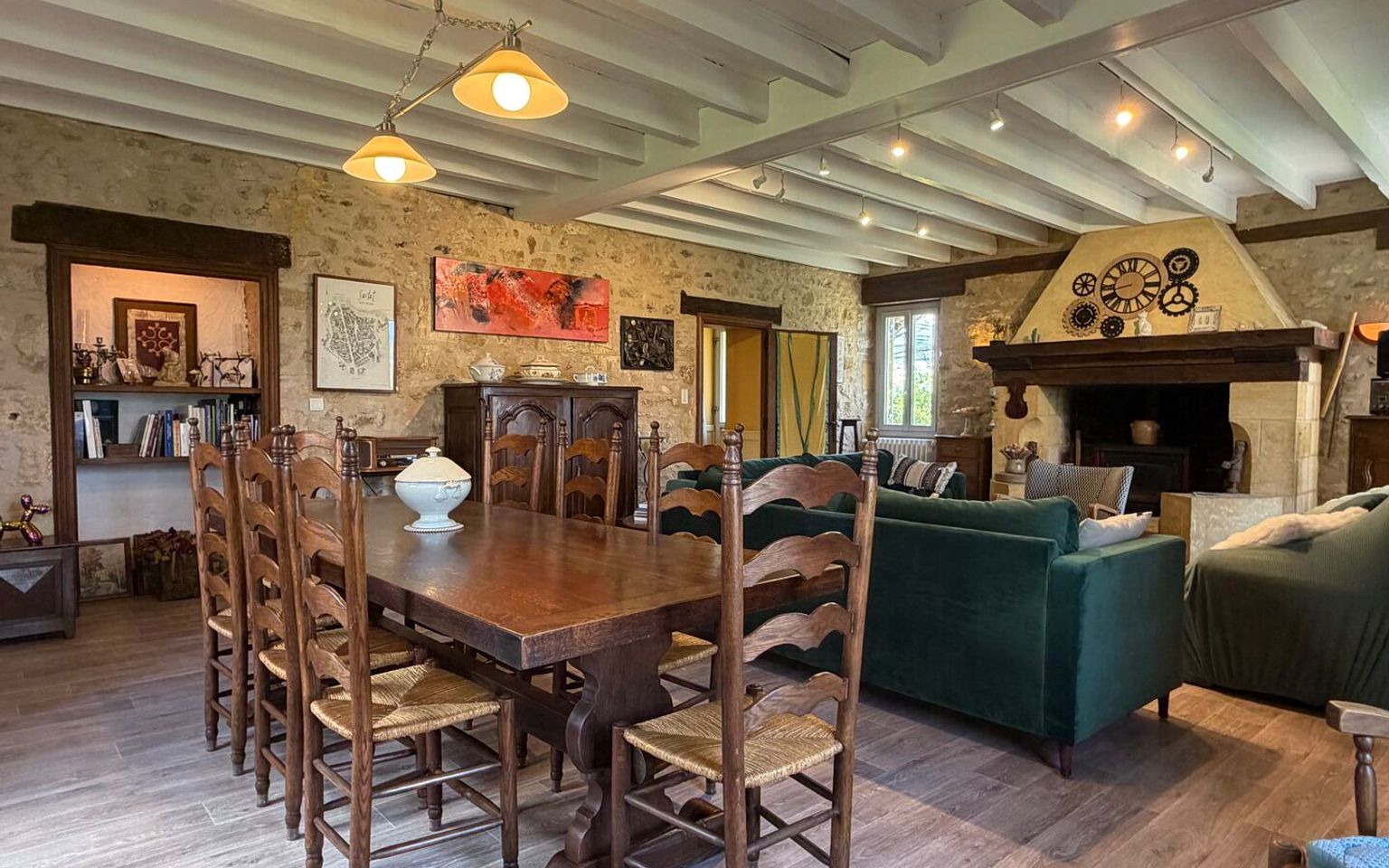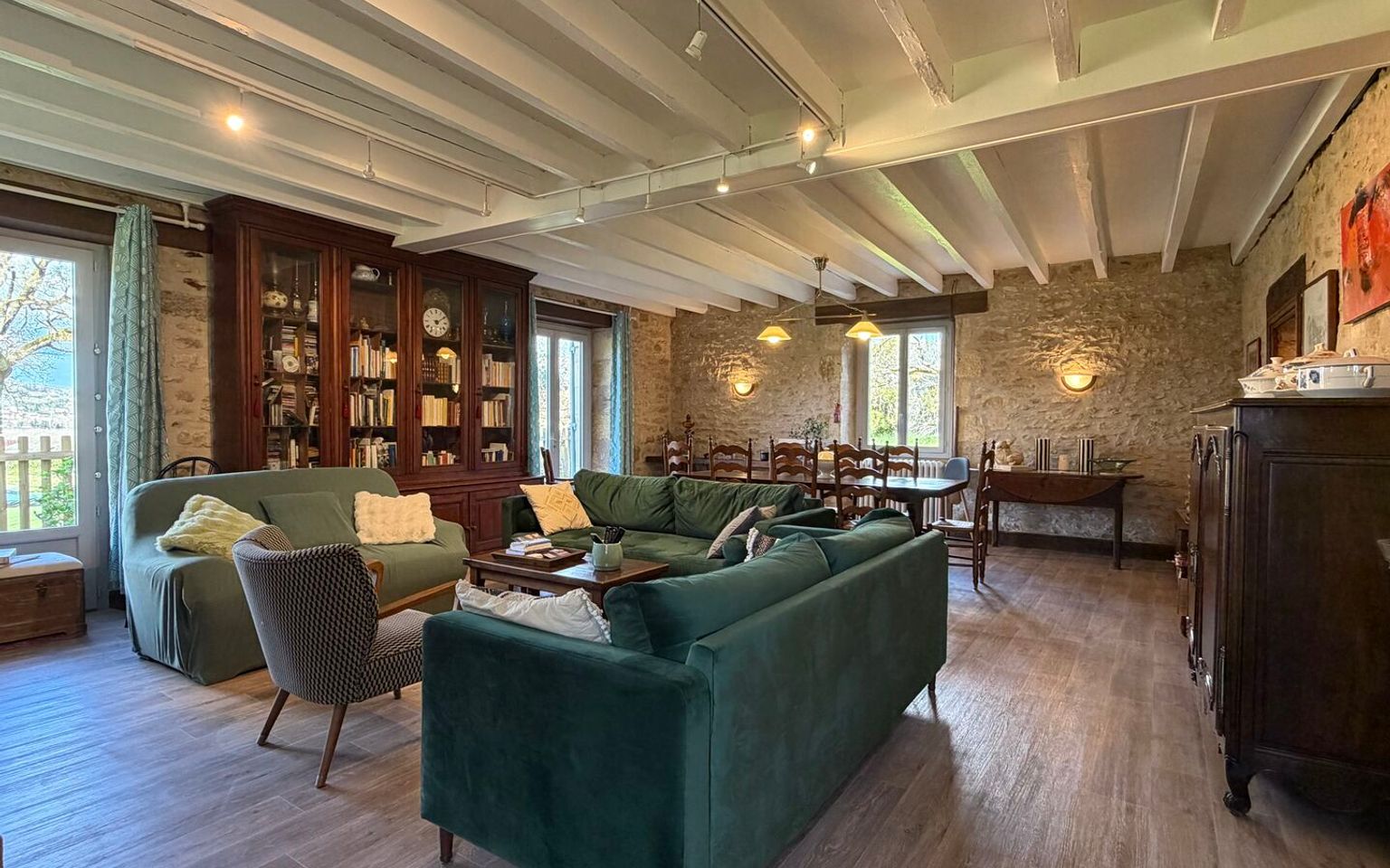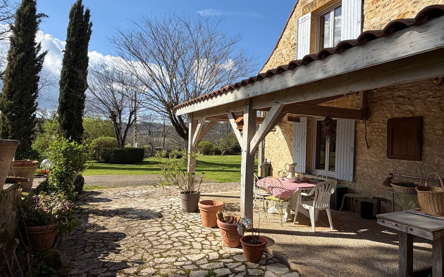 Sur une petite colline, à l’abri des regards, cette belle maison offre un cadre de vie rare et inspirant, où calme, lumière et panorama s’accordent naturellement. Située en Périgord Noir, à proximité immédiate de la rivière Dordogne (sans être en zone inondable), la propriété bénéficie d’une position dominante avec une très belle vue sur le village. Celui-ci est accessible à pied ou à vélo en traversant le pont du Garrit, agréable liaison douce entre nature et vie locale. Ici, les journées commencent avec le doux son des oiseaux et se terminent dans une ambiance feutrée, rythmée par la lumière du soir sur le village. Une maison spacieuse et bien agencée Une maison familiale où chaque espace trouve son tempo Au rez-de-chaussée : • Entrée accueillante, introduction parfaite à la visite • Salon chaleureux, propice aux moments de partage • Salle à manger conviviale, idéale pour les grandes tablées • Cuisine indépendante • Salle de bains • Toilettes séparées • Buanderie À l’étage : • Cinq chambres, véritables espaces de repos et d’inspiration • Salle de bains • Toilettes séparées • Palier pouvant accueillir un coin lecture, écriture ou musique Un extérieur en harmonie avec la nature Le grand jardin entoure la maison et offre un sentiment d’intimité rare. Le chant du vent dans les arbres accompagne les journées d’été, tandis que la piscine devient un lieu de détente où le temps semble ralentir, face à la vue dégagée sur le village. Une maison qui résonne juste Les propriétaires ont trouvé ici un lieu où la voix se pose naturellement, où le silence a toute sa place et où chaque pièce semble avoir sa propre acoustique. Une maison pensée pour celles et ceux qui recherchent un cadre de vie inspirant, loin du tumulte, mais proche de l’essentiel. Un bien rare en Dordogne, alliant tranquillité, proximité du village, piscine, jardin et vue, idéal pour une résidence principale ou secondaire dans le secteur recherché du Périgord Noir. À découvrir sans tarder. Les informations sur les risques auxquels ce bien est exposé sont disponibles sur le site Géorisques www.georisques.gouv.fr
