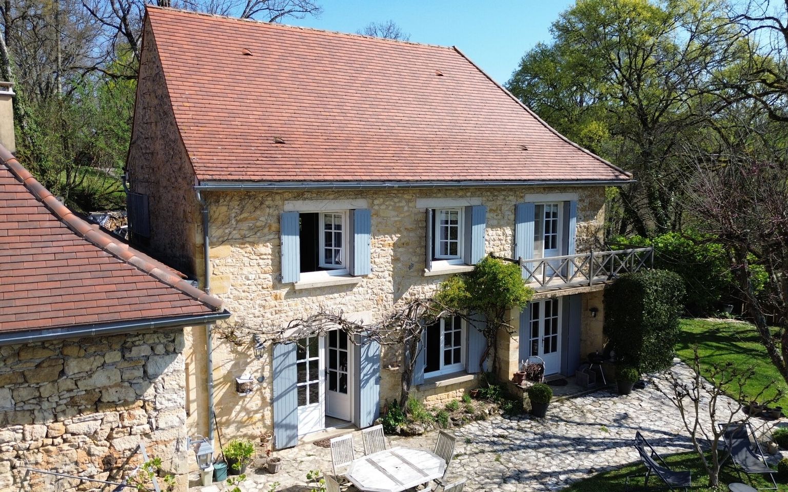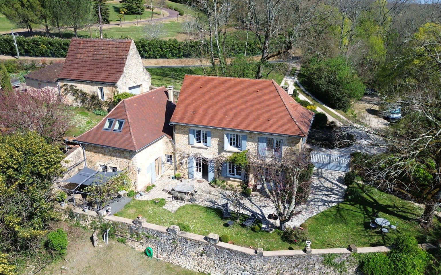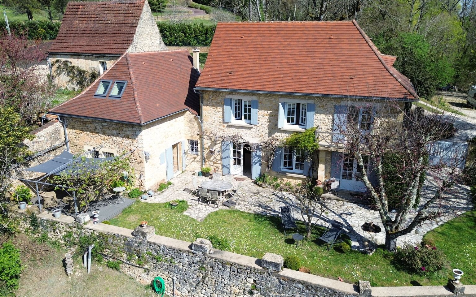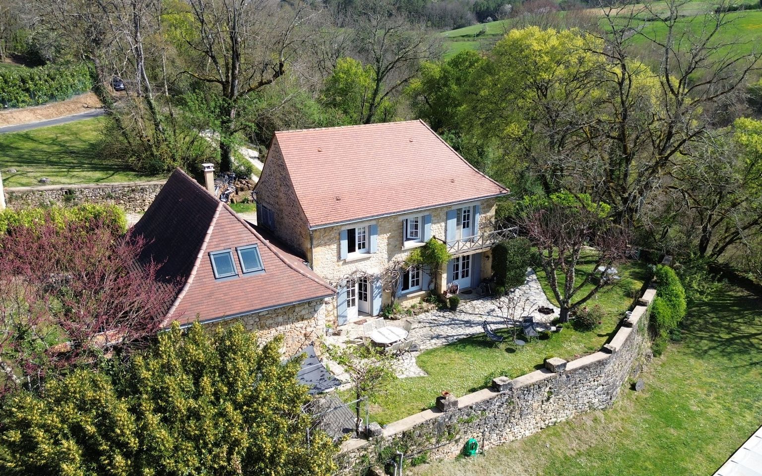 Set in the heart of unspoilt natural surroundings, in a setting of absolute tranquillity, this elegant property, built from yellow Périgord stone, embodies all the charm and authenticity of the region’s architecture, situated close to the village centre with all its amenities. The house, full of character, offers spacious, welcoming rooms and a refined atmosphere. It comprises four bedrooms, one of which is on the ground floor (currently used as an office/library), each with its own en-suite bathroom. One bedroom has its own separate entrance, ideal for hosting family and guests or offering the potential to generate additional income. On the garden level, the living areas are bright and pleasant, opening out onto the garden and the lovely view. Outside, the property extends over nearly 3.5 hectares of land, offering a rare, intimate and perfectly preserved setting. The swimming pool (heated), harmoniously integrated into the landscape, invites you to relax and enjoy special moments surrounded by nature. Old stonework, a peaceful setting, spacious grounds and potential for guest accommodation make this property an exceptional find, ideal as a characterful main residence, an elegant country house or a high-end accommodation project. Large garage/workshop with a charging point for electric cars. A unique place where authenticity, serenity and the art of living come together – all you need to do is move in. Immersive 3D tour available on request. Information on the risks associated with this property is available on the Géorisques website: www.georisques.gouv.fr