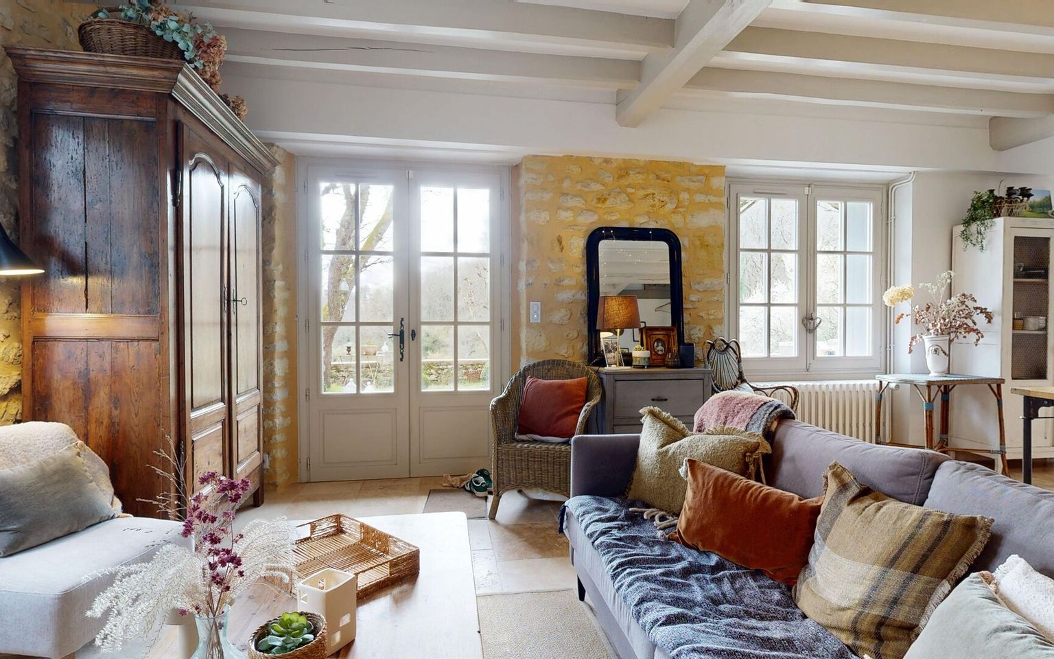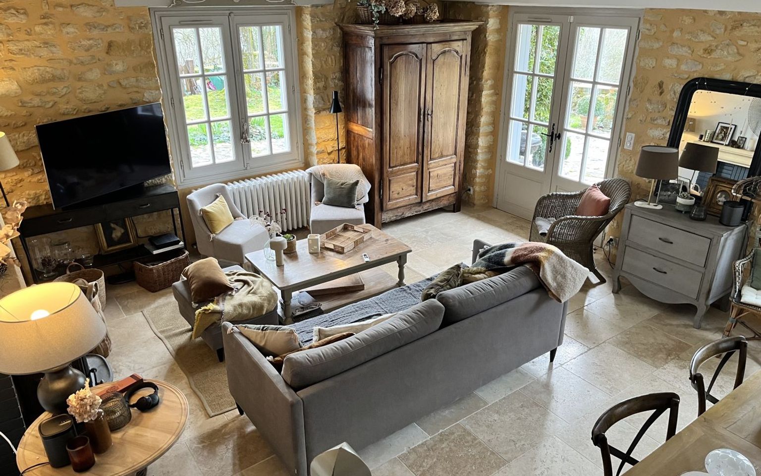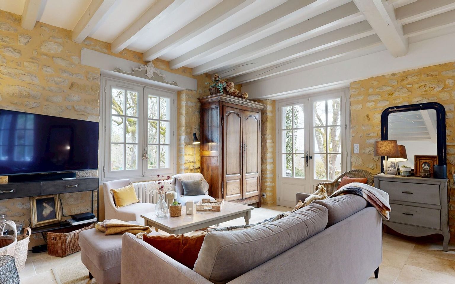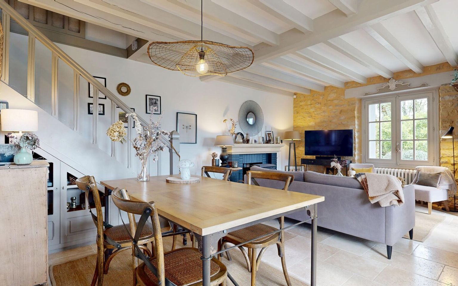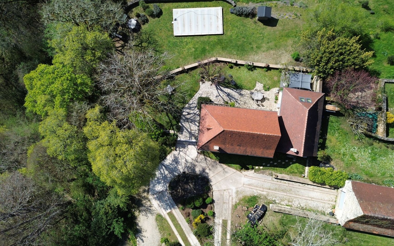 Set in the heart of unspoilt natural surroundings, in a setting of absolute tranquillity, this elegant property, built from yellow Périgord stone, embodies all the charm and authenticity of the region’s architecture, situated close to the village centre with all its amenities. The house, full of character, offers spacious, welcoming rooms and a refined atmosphere. It comprises four bedrooms, one of which is on the ground floor (currently used as an office/library), each with its own en-suite bathroom. One bedroom has its own separate entrance, ideal for hosting family and guests or offering the potential to generate additional income. On the garden level, the living areas are bright and pleasant, opening out onto the garden and the lovely view. Outside, the property extends over nearly 3.5 hectares of land, offering a rare, intimate and perfectly preserved setting. The swimming pool (heated), harmoniously integrated into the landscape, invites you to relax and enjoy special moments surrounded by nature. Old stonework, a peaceful setting, spacious grounds and potential for guest accommodation make this property an exceptional find, ideal as a characterful main residence, an elegant country house or a high-end accommodation project. Large garage/workshop with a charging point for electric cars. A unique place where authenticity, serenity and the art of living come together – all you need to do is move in. Immersive 3D tour available on request. Information on the risks associated with this property is available on the Géorisques website: www.georisques.gouv.fr