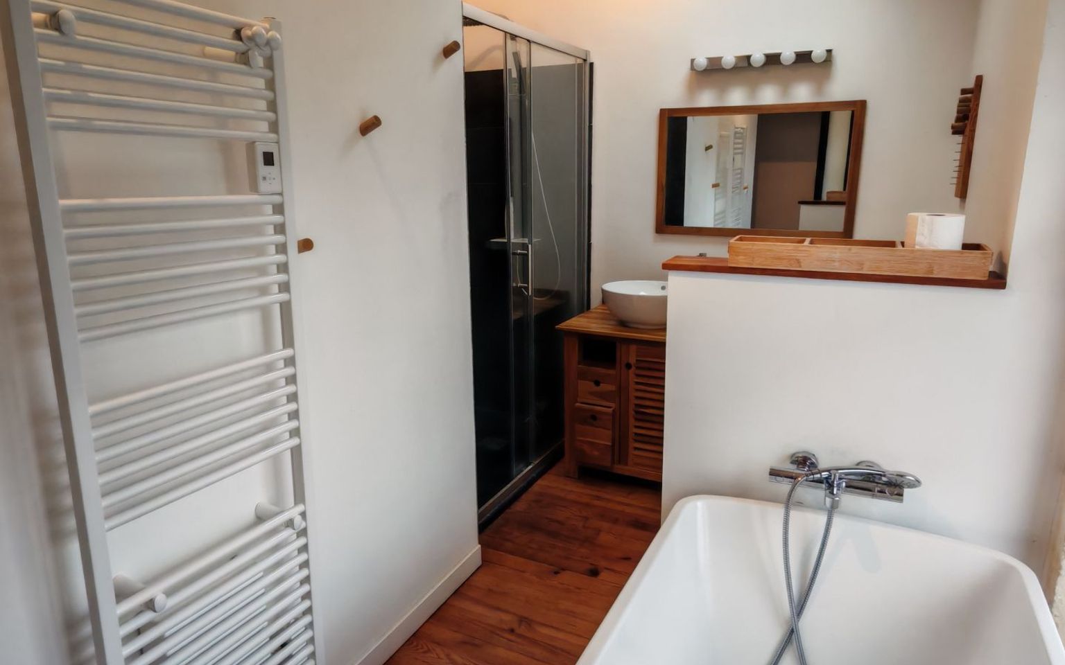 The 123m² of the house are distributed as follows: a large living room, a kitchen, an entrance hall with WC and a bedroom with its own shower room. The entire ground floor has access to the terrace. The first floor comprises another shower room and 3 bedrooms.