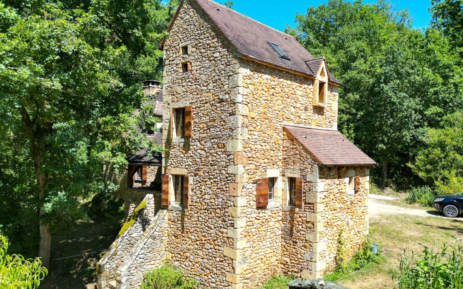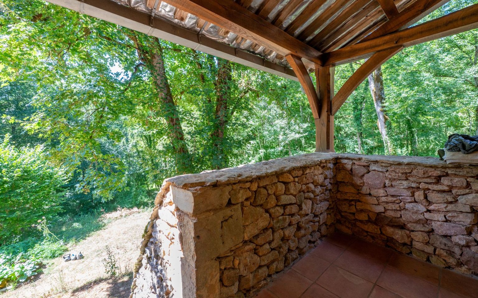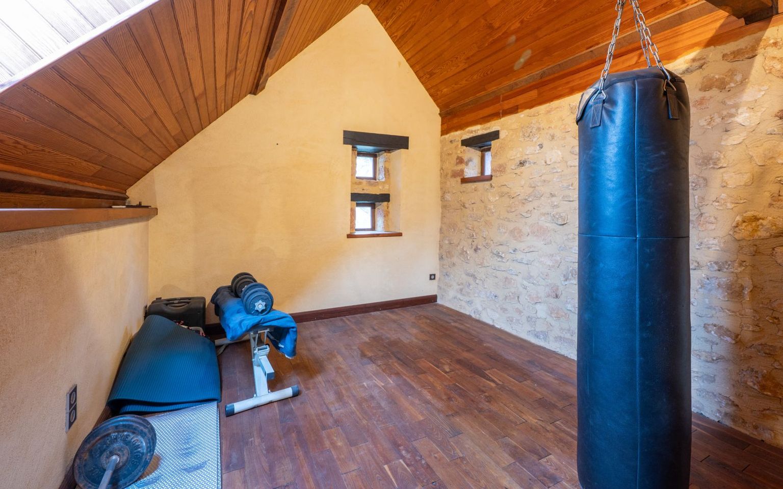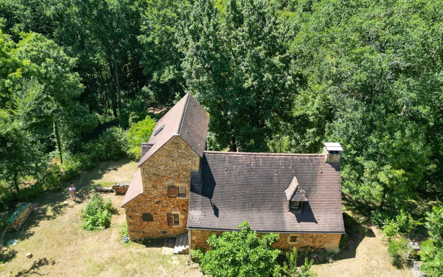 In a secluded location on 2.43 hectares of woodland, this attractive stone house offers peace and quiet and a high-quality environment, with approximately 97m² of living space. Separate garage, well.
