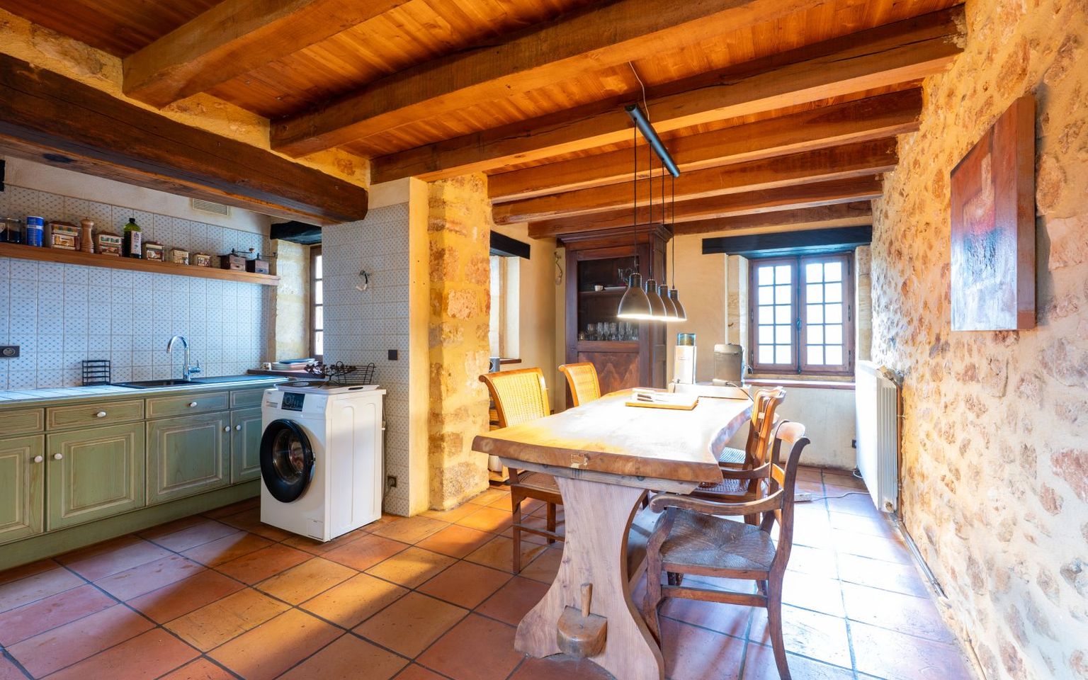 on the lower half-level, 20m² dining room/kitchen.