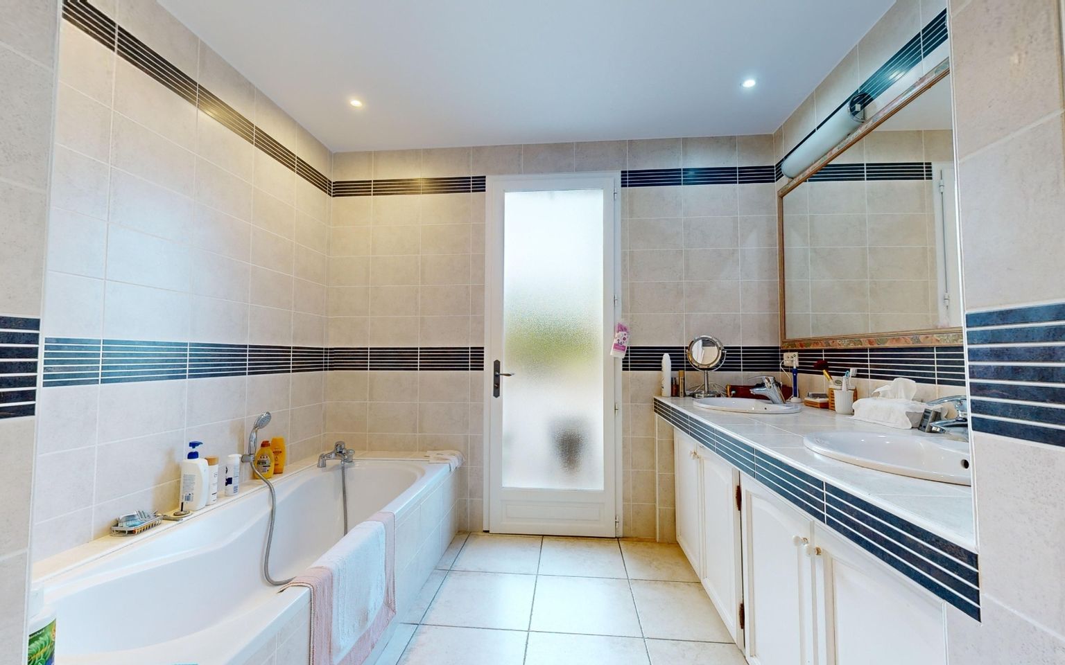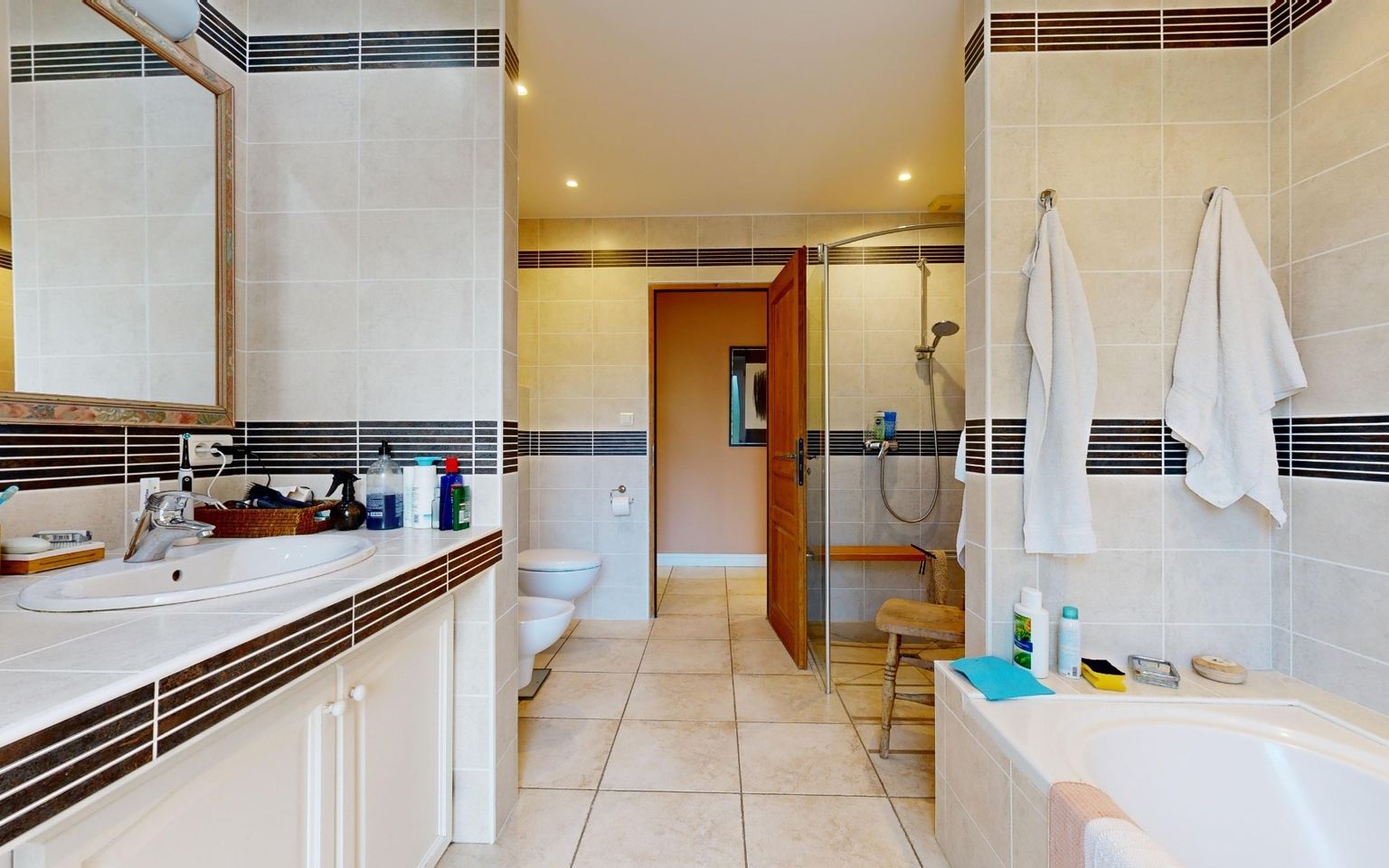 Dressing room, bathroom with walk-in shower and bathtub