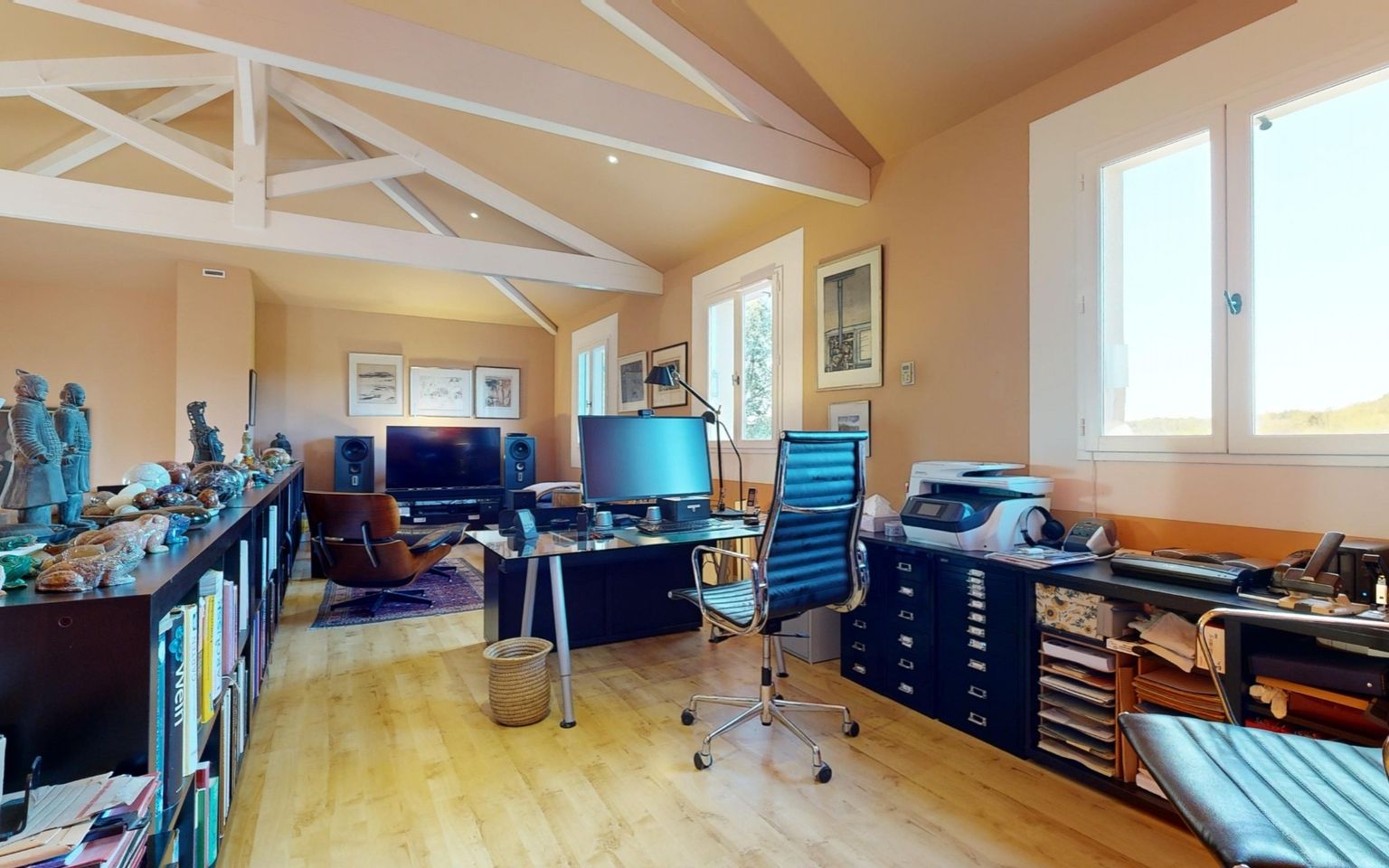 Mezzanine convertible into office or relaxation area, overlooking the living room