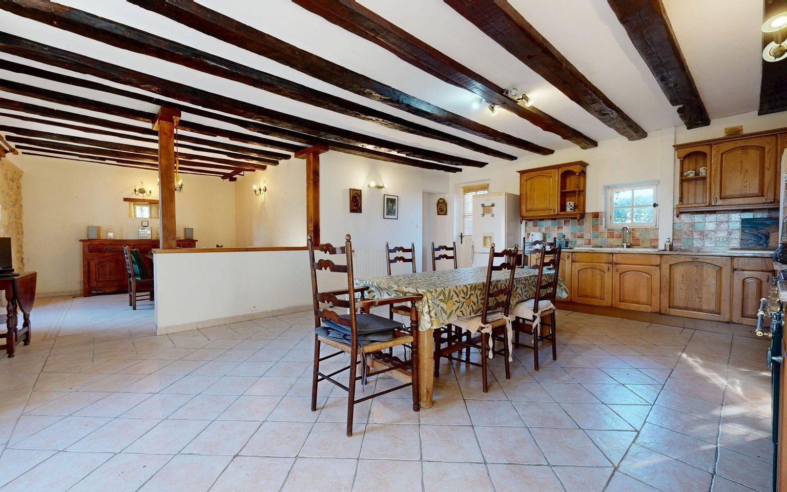 A env 30 min de Perigueux, 10 min des Eyzies, non isolée mais au calme, cette propriété ancienne en pierres avec longère aménagée sur deux niveaux, 246m2 hab propose de beaux volumes, elle comprend notamment cuisine aménagée et équipée/Salle à Manger avec sortie sur terrasse. Arrière cuisine, entrée, wc, bureau, salon avec cheminée et poêle. Accès au garage. A l'étage, par un large palier au plancher à lames larges, 4 chambres, 2 salle de bains, une chambre parentale avec salle de bains attenante. Chauffage central au gaz, clim réversible à l'étage, 2 poeles à bois. Piscine chauffée, pool house. Ancien Hangar d'env 60m2 à usage d'atelier, bûcher, garage et au Premier étage beau volume peut-être pour une salle de jeux, de sports ? Grand parc de plus d'un hectare en jardin d'agrément, puits, prairie autour de la maison, vue dégagée.
